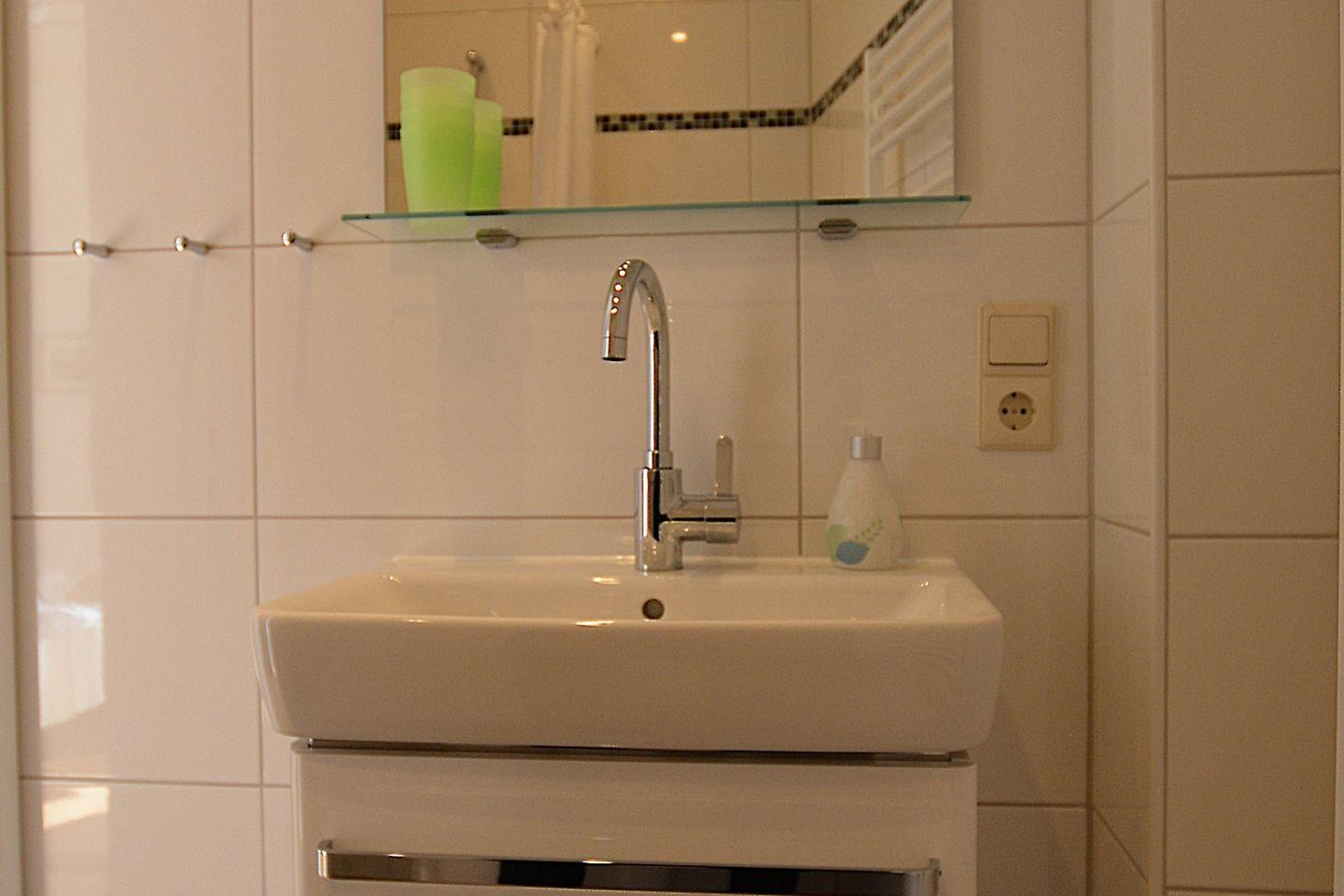 und Bad mit ebenerdiger Dusche und WC.