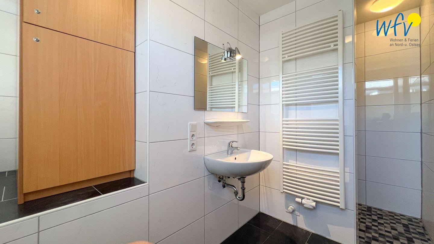 Zwei Badezimmer (EG und OG) mit Dusche und WC ermöglichen auch bei vier Personen angenehme Ausweichmöglichkeiten. Das untere Bad ist rollstuhlgerecht eingerichtet.