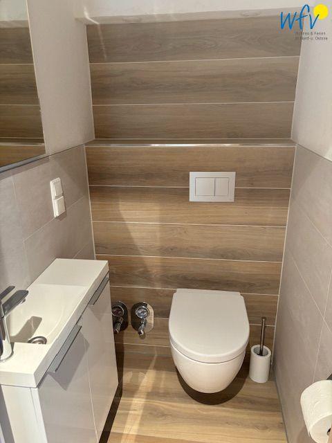 Weiteren Wohnkomfort bietet Ihnen das elegante Tageslichtbad mit bodengleicher Dusche, Doppelwaschtisch und Handtuchheizung. Das zusätzliche Gäste-WC entspannt die täglichen Badezimmerroutinen.
