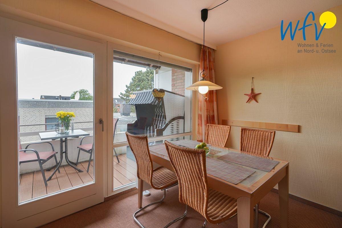 Eine gut ausgestattete Einbauküche ermöglicht Ihnen eine angenehme Selbstverpflegung in Ihrem Urlaub auf Borkum. Unter anderem sind ein 4-Plattenherd (ohne Backofen), ein Kühlschrank mit Gefrierfach sowie diverse Kleingeräte (Kaffeemaschine, Wasserkocher und Toaster) vorhanden. Für das ausgiebige Urlaubsfrühstück oder das gemeinsame Abendessen befindet sich im Wohnraum ein gemütlicher Essplatz am Fenster. Ein Kinderhochstuhl ist vorhanden.