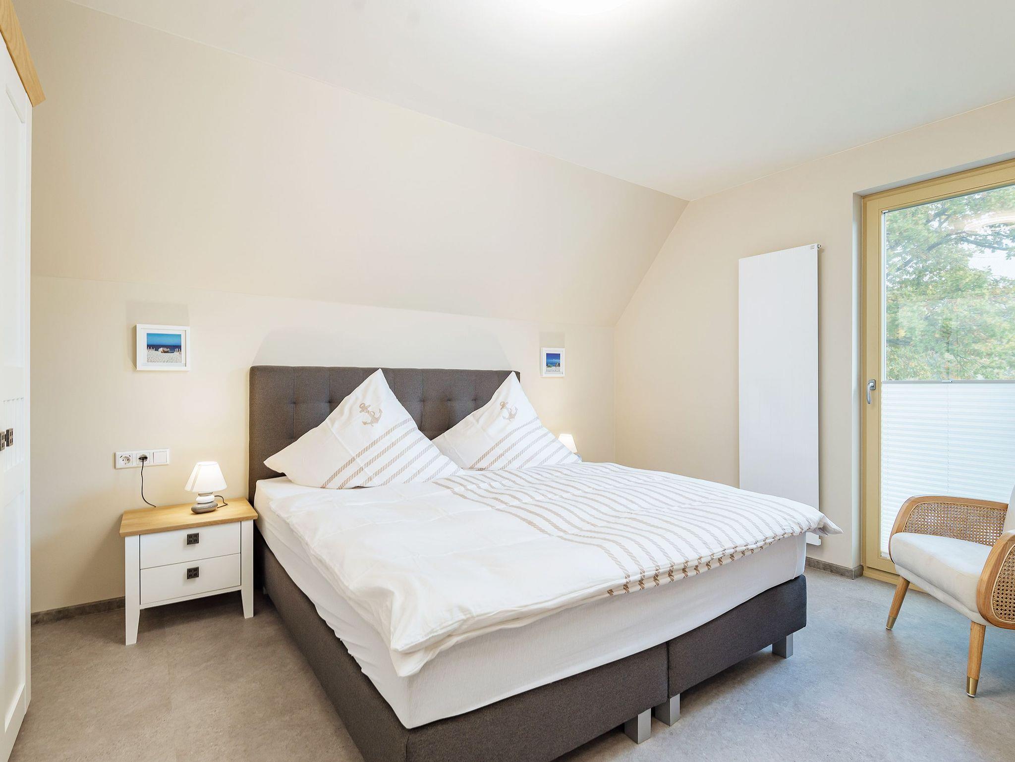 Willkommen im „Hafenkieker“ ? hier ist der Name Programm! Auf großzügigen 99 m² im Obergeschoss eines neu gebauten Feriendomizils habt Ihr nicht nur jede Menge Platz, sondern auch beste Aussichten auf entspannte Urlaubstage für bis zu vier Personen mit Blick auf den Borner Hafen. Zwei gemütliche Schlafzimmer mit jeweils einem großzügigen Boxspringbett (2,00 x 1,80 m) sorgen dafür, dass Ihr entweder tief und fest schlaft… oder morgens darüber diskutiert, wer den besseren Platz hatte. Urlaub kann so schön sein. Das Badezimmer ist Eure persönliche Wellnesszone: großer Waschtisch, ebenerdige Dusche, Fußbodenheizung, Handtuchheizkörper ? und natürlich eine Sauna. Perfekt, um nach einem langen Tag an der frischen Luft wieder aufzutauen oder einfach mal nichts zu tun (was im Urlaub ja bekanntlich eine der Hauptdisziplinen ist).