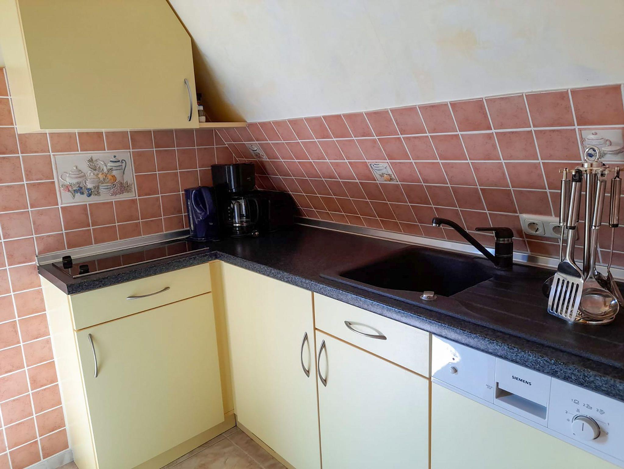 Die 3-Raum-Ferienwohnung Seekiste befindet sich in der ersten Etage eines reetgedeckten Hauses. Sie ist über einen separaten Eingang zu erreichen und bietet Platz für 2 - 4 Personen. Sie verfügt über zwei mit Naturholzmöbel eingerichtete Schlafzimmer (im ersten Schlafzimmer befindet sich ein Doppelbett (getrennte Matratzen) und im zweiten Schlafzimmer zwei Einzelbetten), ein Wohnzimmer mit Sat-TV und Telefon sowie einer separaten kleinen Küche mit Essecke. Durch die Küche gelangen Sie in das kleine Bad mit Badewanne, und von da aus in das erste Schlafzimmer, welches ebenfalls ein Durchgangszimmer zum zweiten Schlafzimmer ist. Auf der vom zweiten Schlafraum zu begehenden Loggia finden Sie Ruhe und Entspannung nach einem erlebnisreichen Tag. Angeschlossen an die Ferienwohnung ist eine Sitzecke für Ihre private Nutzung.