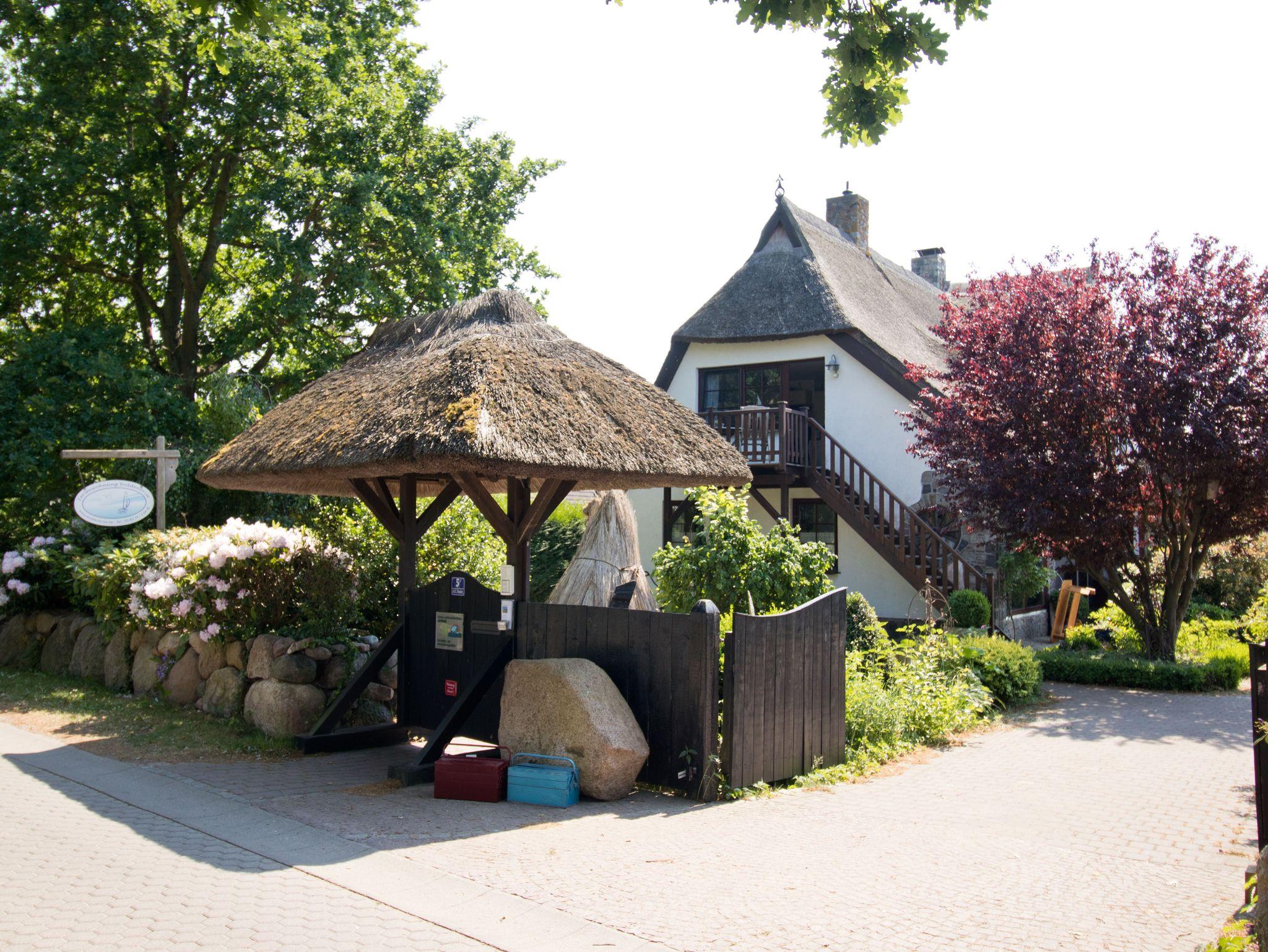 Die Ferienwohnung Boddenbrise ist eine gemütliche Dachgeschosswohnung im ersten Stock unter einem traditionellen Reetdach und verfügt über etwa 50 qm Wohnfläche. Sie ist ideal für zwei Personen geeignet, eine dritte Person kann auf Anfrage zusätzlich untergebracht werden.
