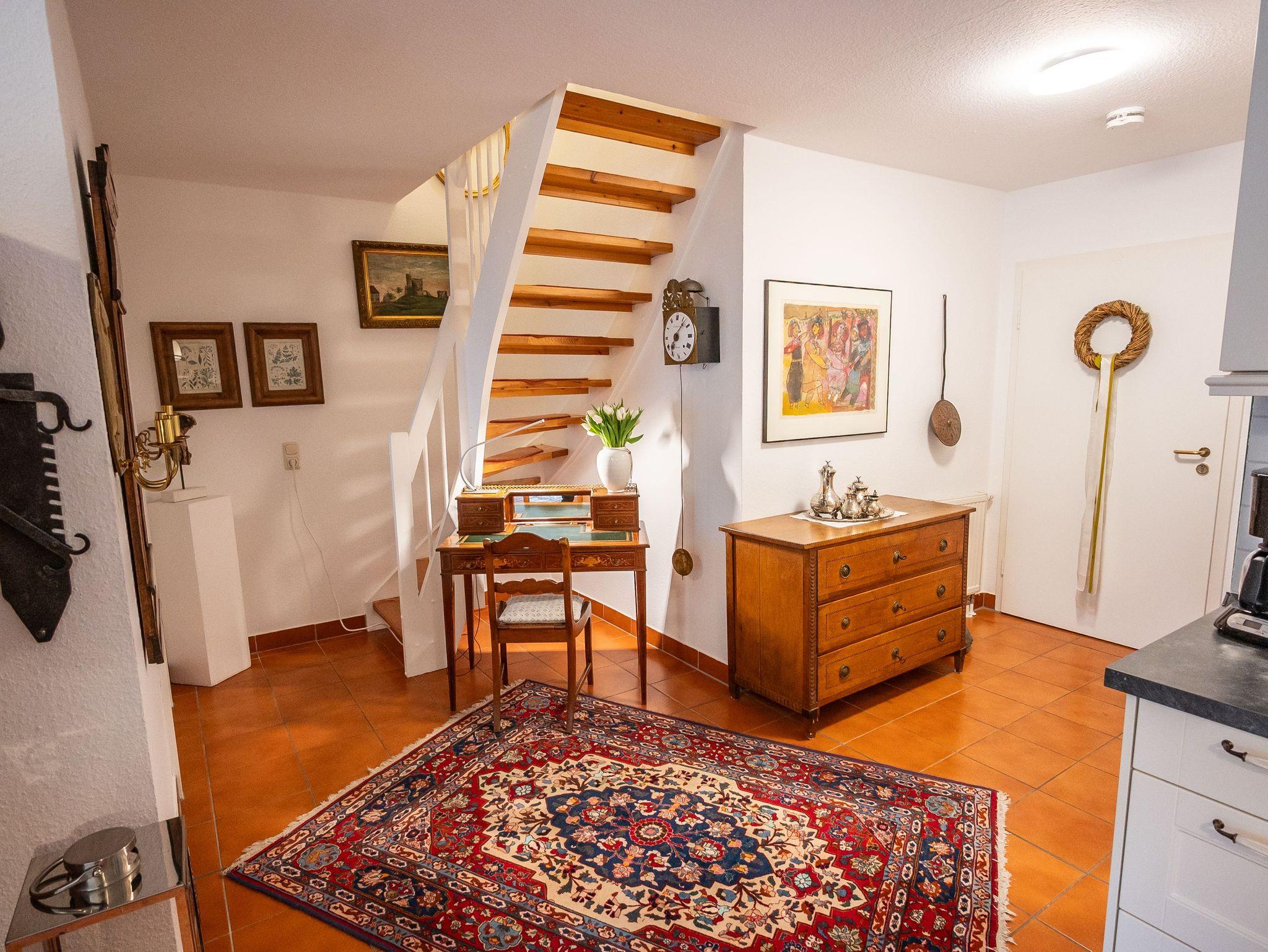 Die Klönstuv begeistert mit einer außergewöhnlich stilvollen Einrichtung, die Geschichte und Wohnkomfort harmonisch verbindet. Hochwertige Antiquitäten aus verschiedenen Epochen, ausgewählte Ölgemälde und liebevoll restaurierte Einzelstücke verleihen der Wohnung eine warme, individuelle Atmosphäre. Ein Eichenschrank aus dem 18. Jahrhundert, eine historische Anrichte sowie weitere besondere Fundstücke machen den Aufenthalt zu einem besonderen Wohnerlebnis.