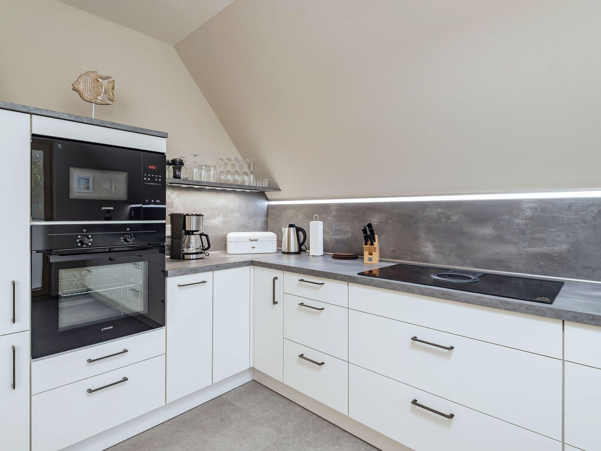 • Einbauküche mit Induktionskochfeld, Backofen, Geschirrspüler, Kühl-/Gefrierkombination, Wasserkocher, Toaster, Kaffeemaschine, Kochutensilien von Zwilling, Mikrowelle