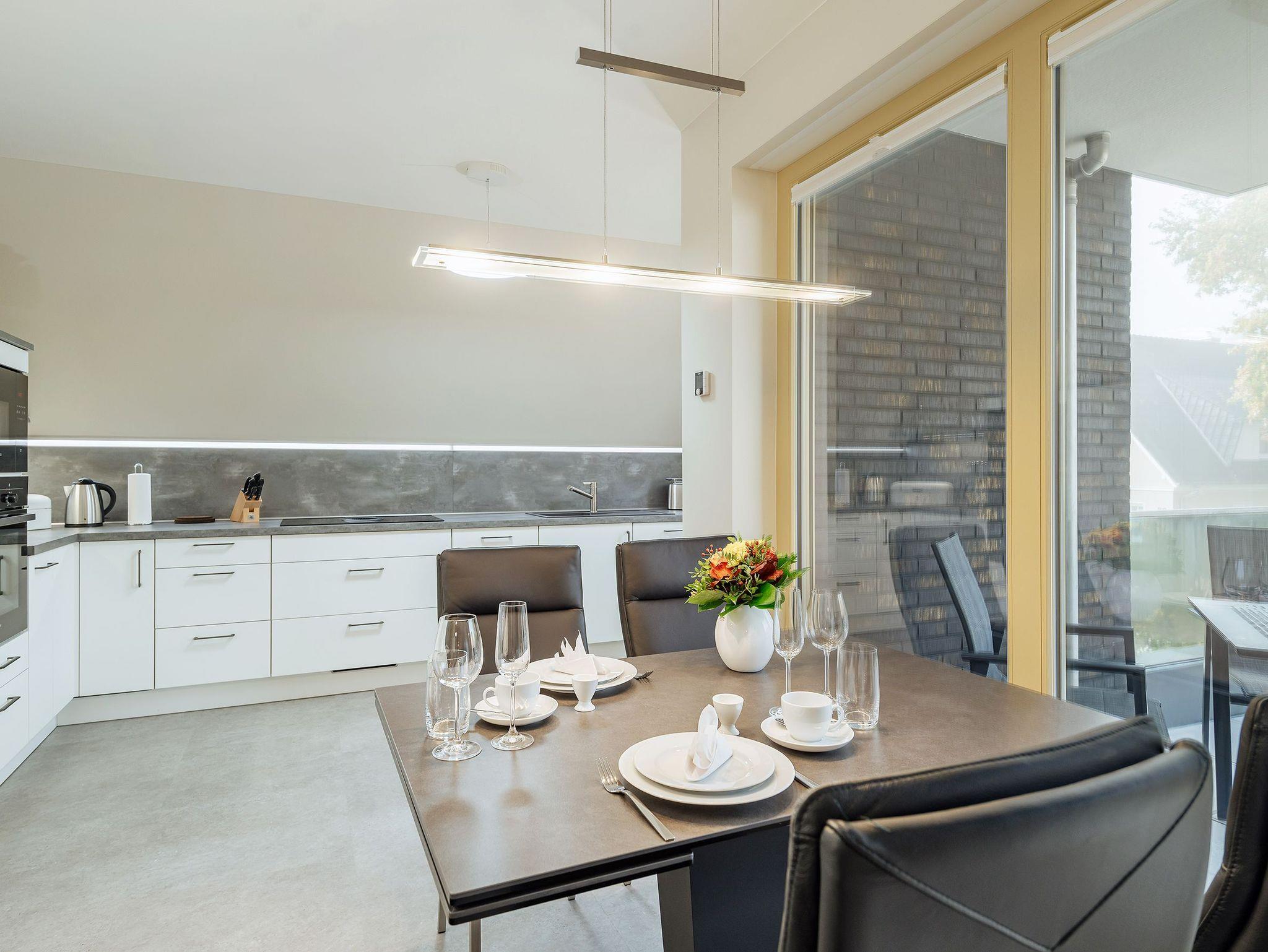 Für alle, die gern den Kochlöffel schwingen (oder es im Urlaub endlich mal ausprobieren wollen), ist die moderne Einbauküche bestens ausgestattet: Induktionskochfeld, Backofen, Mikrowelle, Geschirrspüler und alles, was dazugehört. Hochwertige Kochutensilien von Zwilling und stilvolles Geschirr sorgen dafür, dass selbst ein einfaches Abendessen zum kleinen Event wird. Und falls doch mal etwas daneben geht ? die Siemens Waschmaschine im Hauswirtschaftsraum steht bereit.