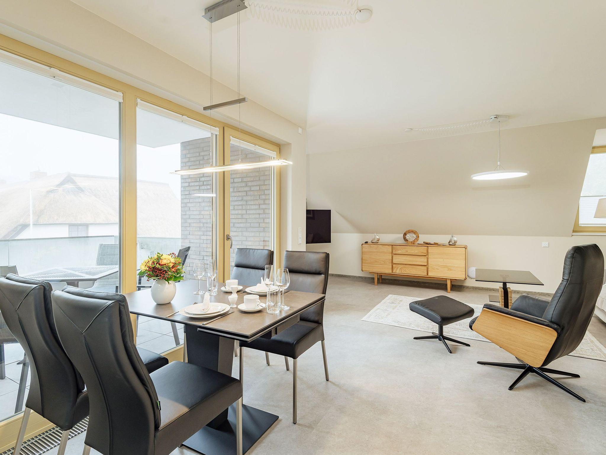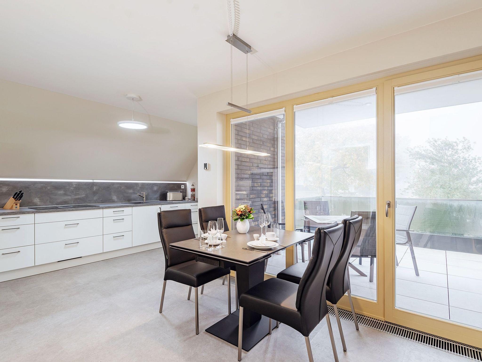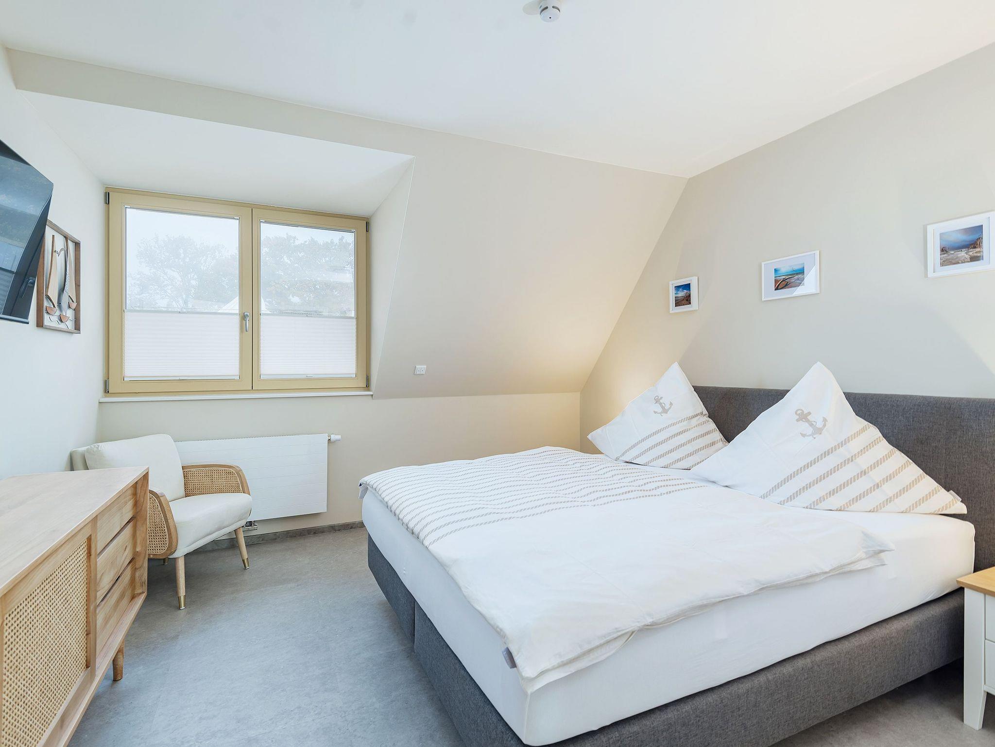 Das Schlafzimmer in ruhiger Nordausrichtung sorgt mit seinem großzügigen Boxspringbett (2,00 x 1,80 m) für erholsame Nächte ? perfekt, um nach einem Tag voller frischer Ostseeluft die Akkus wieder aufzuladen. Der helle, offene Wohn- und Küchenbereich liegt in Westausrichtung und verwöhnt Euch mit viel Licht und einem schönen Balkon, auf dem sich der Feierabend besonders gut genießen lässt ? Sonnenuntergang inklusive, wenn das Wetter mitspielt.