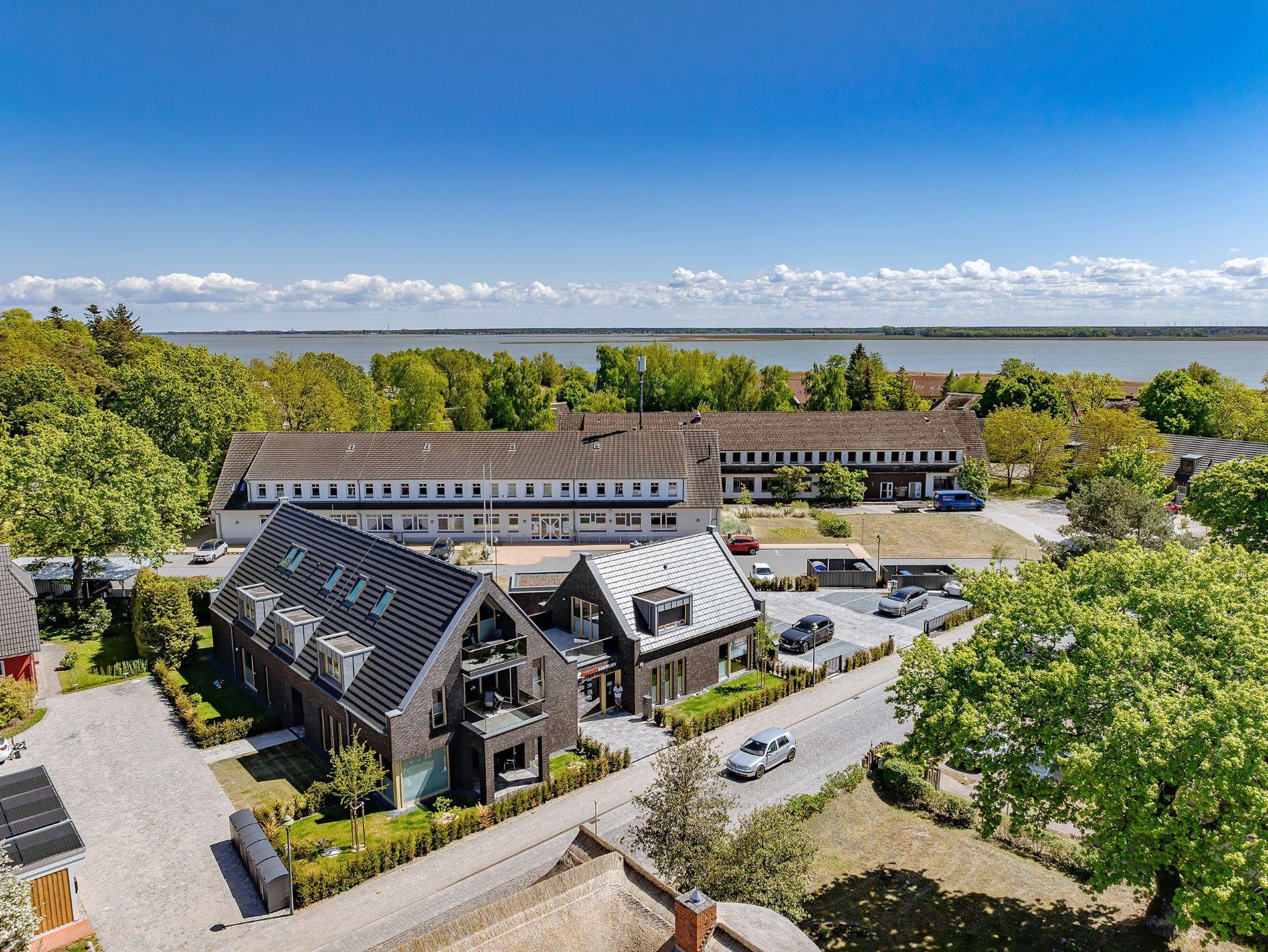 Auf einem ca. 1278 m² großen Grundstück im schönen Seebad Born a. Darß ist ein neues Feriendomizil mit 5 Ferienwohnungen und einer Gewerbeeinheit entstanden. Die Wohnungen sind für 2 - 4 Personen geeignet. Die Grundrisse der jeweiligen Wohnungen, mit 73 m² - 99 m², sind sehr großzügig geschnitten. 4 der 5 Ferienwohnungen sind mit einer Sauna ausgestattet. Tageslichtbäder mit je einem großen Waschtisch, einer ebenerdigen Dusche, einer elektrischen Fußbodenheizung und einem Handtuchheizkörper sind Bestandteil der Ausstattung.