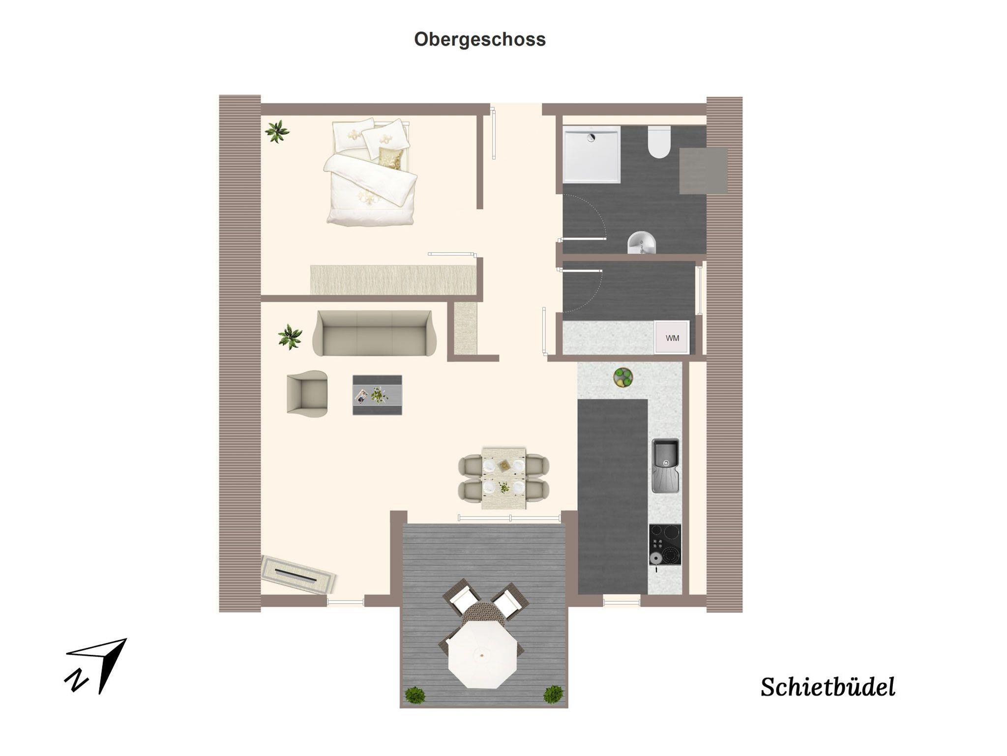 Willkommen im „lütt Schiedbüdel“ ? klein im Namen, aber ganz groß im Urlaubsgefühl! Auf 73 m² im Obergeschoss eines neu gebauten Areals erwartet Euch ein gemütliches Zuhause auf Zeit für bis zu zwei Personen.
