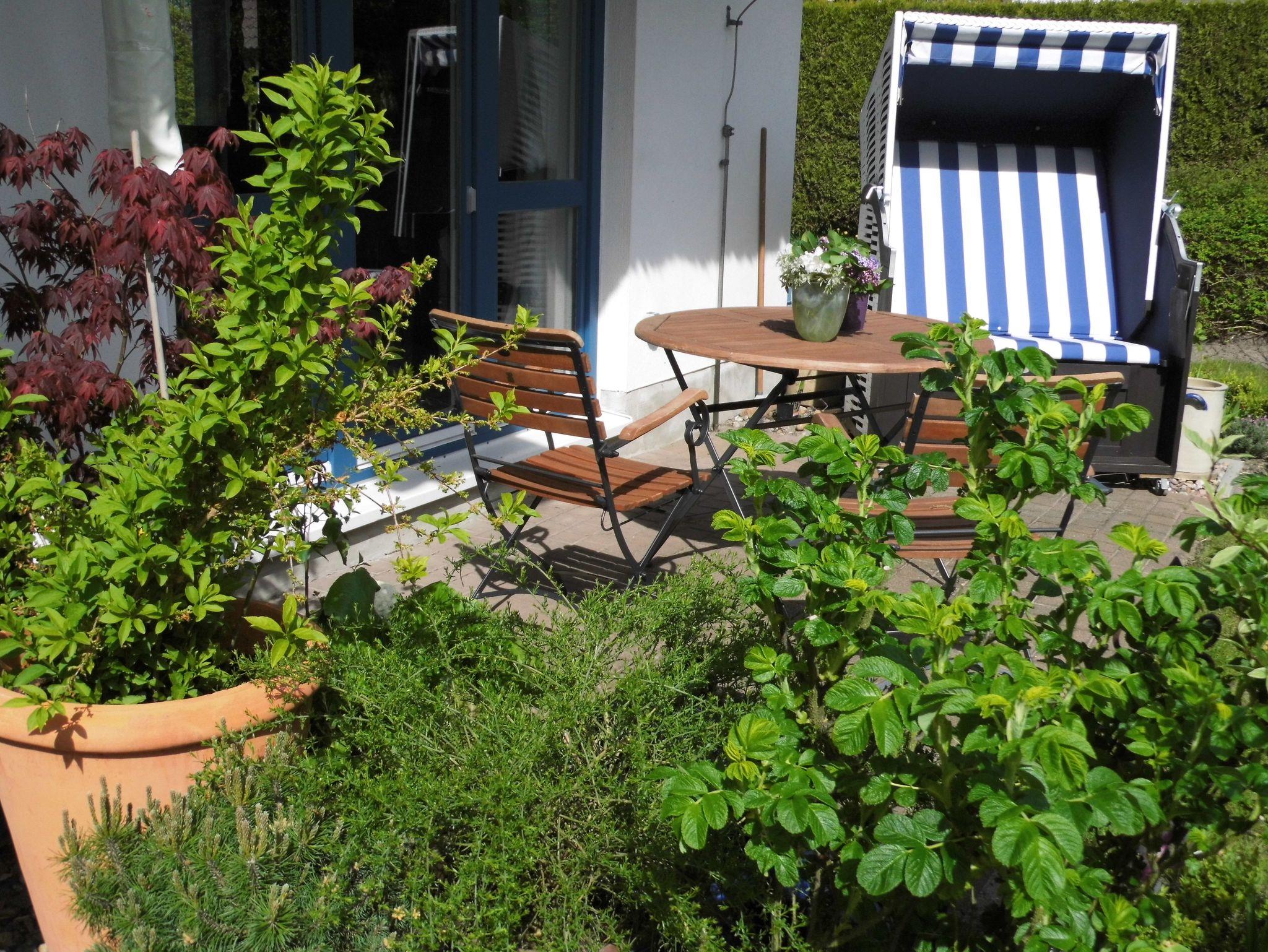 Besonders hervorzuheben sind die ruhige Erdgeschosslage mit Terrasse und Strandkorb, der eigene Parkplatz direkt am Haus, ein ebenerdig erreichbarer Keller für Fahrräder sowie die im Haus befindliche Sauna, die gegen Gebühr genutzt werden kann. Die Wohnung ist eine Nichtraucherunterkunft und für maximal zwei Personen ausgelegt.
