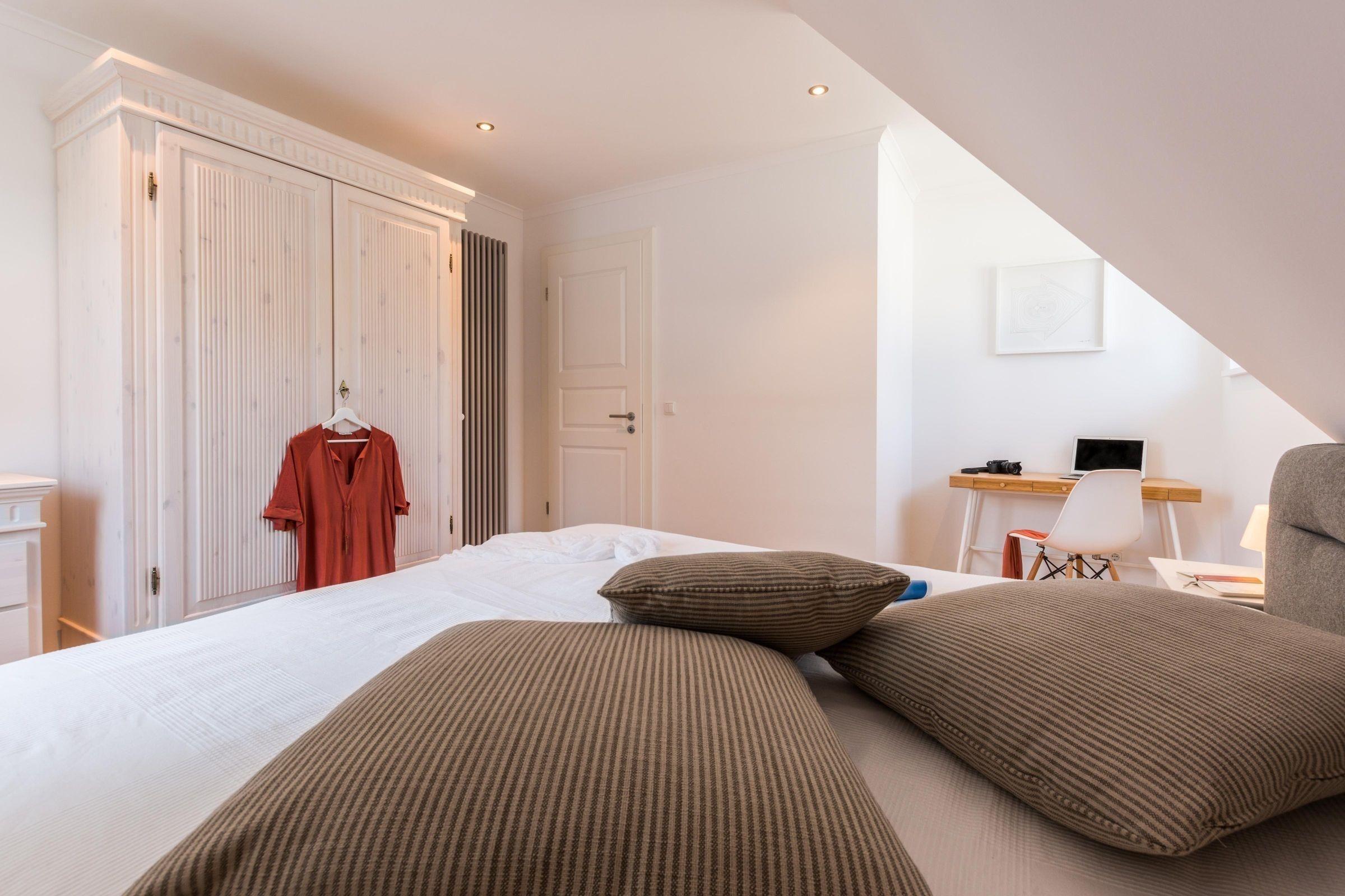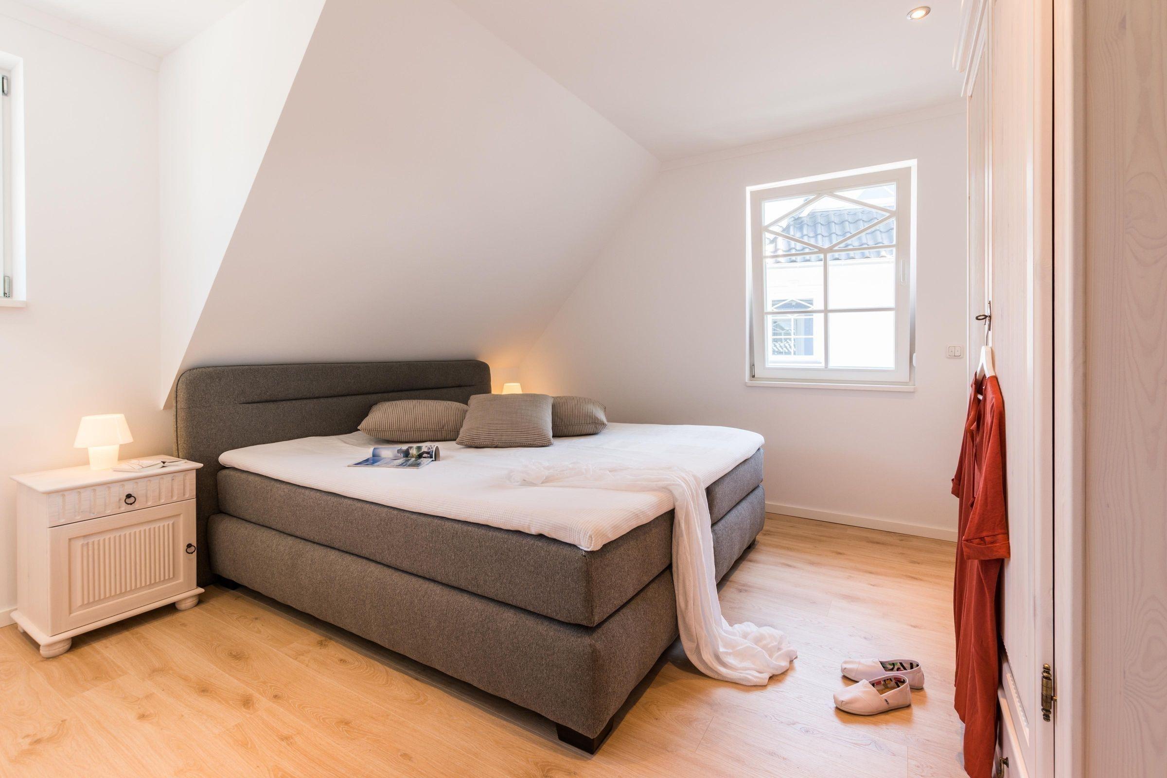 Die Ferienwohnung bietet eine komfortable und allergikergeeignete Unterkunft mit insgesamt vier Schlafzimmern, die Platz für bis zu neun Personen bieten. Zur Ausstattung gehören drei Doppelbetten und ein Einzelbett sowie zwei Badezimmer, eines davon mit bodengleicher Dusche und Fenster. Der offene Wohnbereich verfügt über ein gemütliches Sofa und einen Kamin, der für eine angenehme Atmosphäre sorgt.
