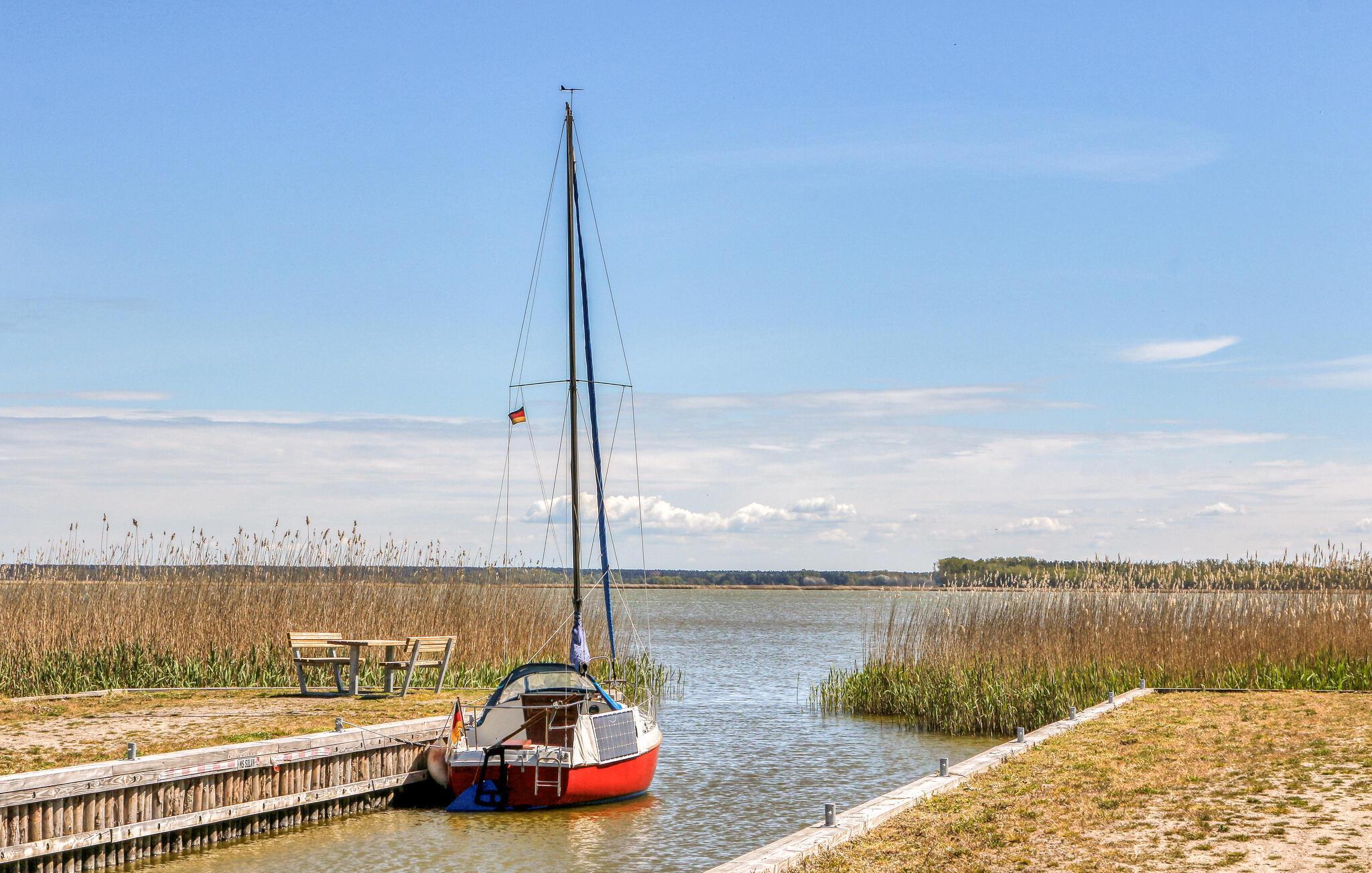Det lille sommerhus, et separat boliganneks, ligger på ejerens beboelsesejendom kun ca 100 m fra den lille havn på Bodstetter Bodden. Østersøstranden kan nås efter ca. 5 km. Den er udstyret med: kombineret stue/soveværelse (dobbeltseng, opholds-/spisestue, TV, radio/CD), køkken (el kogeplade, køleskab med fryser, mikroovn, diverse køkkenmaskiner), bad/WC, insektnet, Centralvarme. Til rådighed: møbleret terrasse, grill og parkeringsplads. Robåd til leje (25 EUR/dag på stedet). Den samlede pris inkluderer slutrengøring, sengelinned, håndklæder, vand og energi. Betales på stedet: turistskat. Kæledyr er ikke tilladt i denne ejendom. Born er en turistby på Bodden-kysten af halvøen Fischland-Darß-Zingst direkte på nationalparken Western Pomerania Lagoon Landscape. Darßer-junglen umiddelbart nord for Born præsenterer sig med moser og bizart dyrkede vindblæste skove på vestkysten af Østersøen. Udover små havne og badebroer byder området omkring samfundet på et veludbygget netværk af cykel- og vandrestier. Passagerskibe sejler til kommunerne Fischland, til Bodstedt og Barth. Bybilledet er præget af de typiske lave huse med dybe stoktage og brede buede kviste.