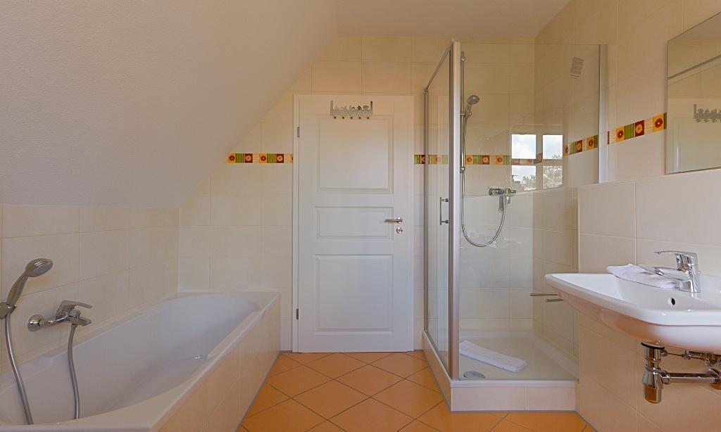 Das Erdgeschoss verfügt über einen großzügigen Wohnraum mit Kaminofen und einer gemütlichen Sitzecke. Die komfortable Einbauküche und der große Esstisch sorgen für einen offenen Wohncharakter und versprechen Ihnen gesellige Abende mit der ganzen Familie. Das Bad mit Dusche/WC und Waschmaschine schließt sich direkt an. Weiterhin findet ein kleiner Flur sowie ein Abstellraum in der unteren Etage Platz. Im Obergeschoss befinden sich drei Schlafzimmer, die mit je einem Doppelbett ausgestattet sind. Das großzügige Hauptbadezimmer mit Doppelwaschbecken, Badewanne, Dusche, WC und Bidet rundet den Wohnkomfort ab.