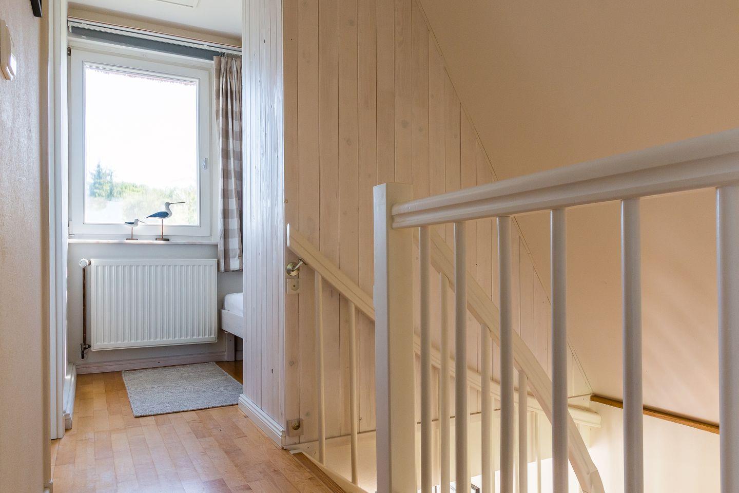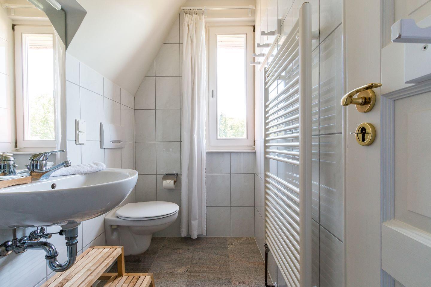 Freue dich auf dieses kleine Ferienhaus, es wurde im Jahr 2017 liebevoll renoviert und komplett neu ausgestattet. Im Erdgeschoss betritt man zunächst einen Windfang mit Garderobe und Gäste-WC. Von dort aus geht es direkt über in den offenen Wohnbereich mit Sofa und Schaukelstuhl. Die Küche und der Esstisch sind ebenfalls im Wohnbereich integriert. Auf der Westseite liegt der Zugang zur Terrasse und zum Garten. Im Dachgeschoss befindet sich ein Schlafzimmer mit einem Doppelbett. Im Vorraum baulich abgeschirmt befindet sich zudem eine halboffene Schlafkoje. Das Bad mit Badewanne und WC fügt sich harmonisch ins Obergeschoss ein.