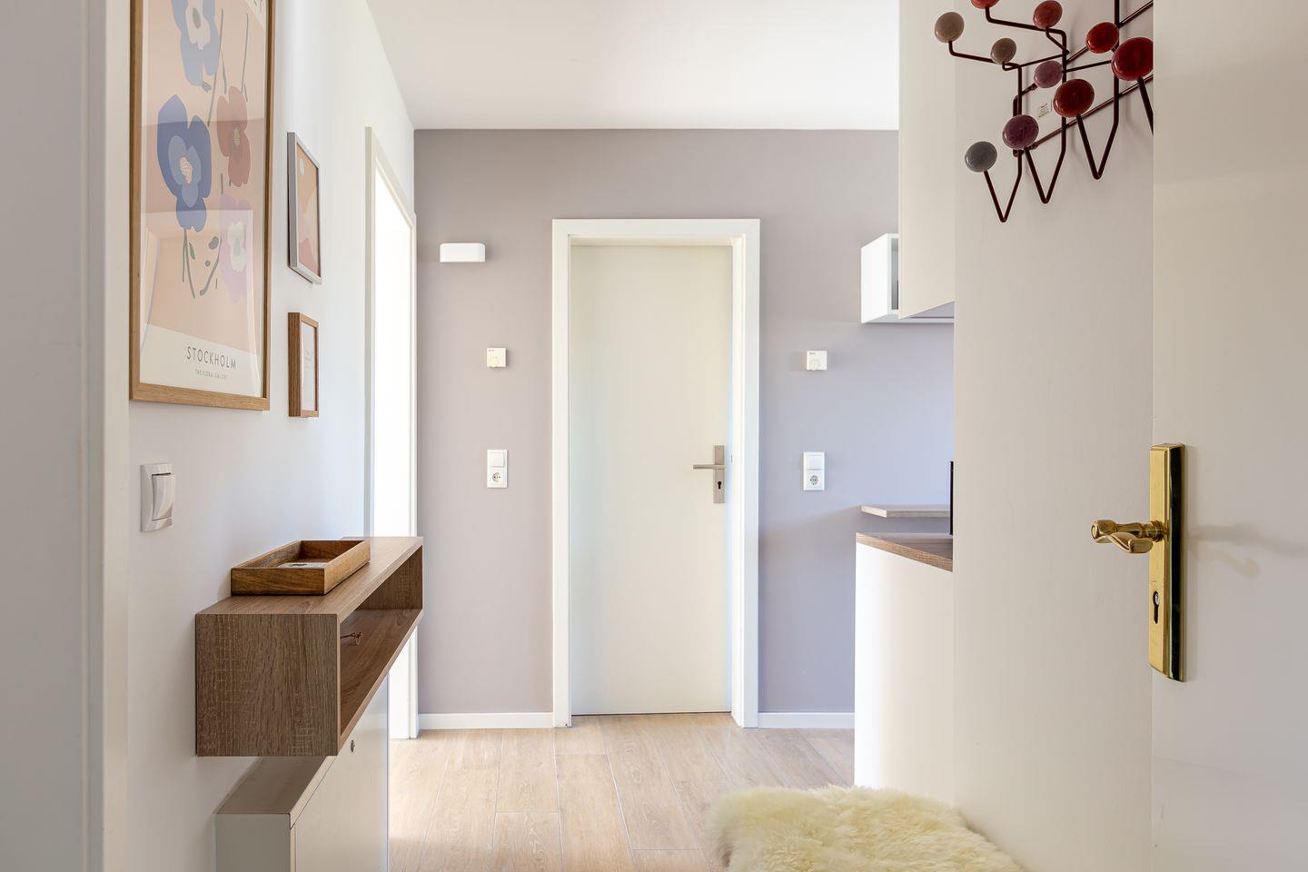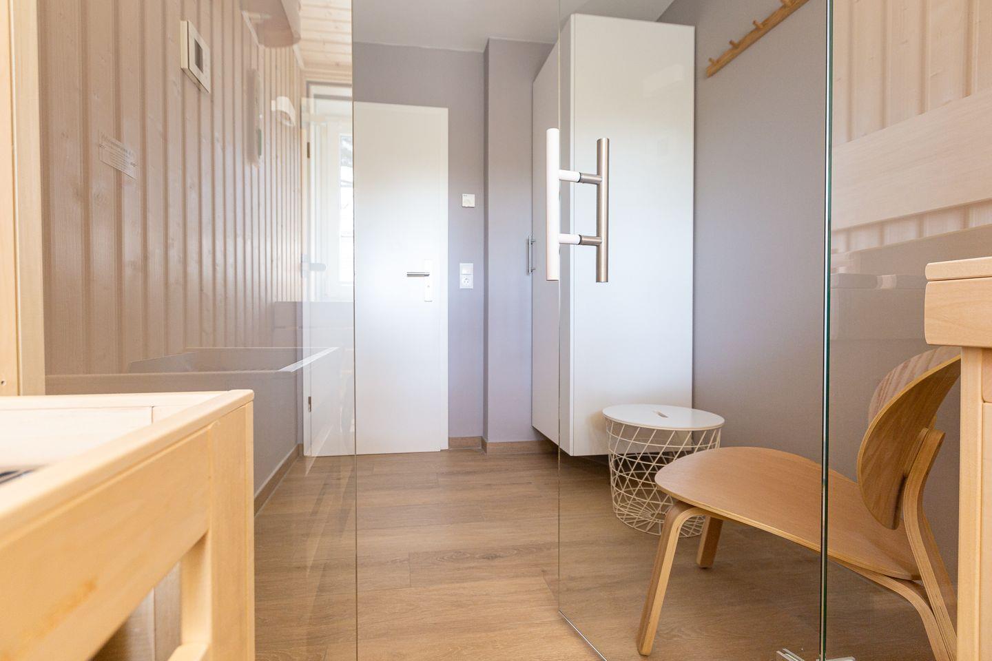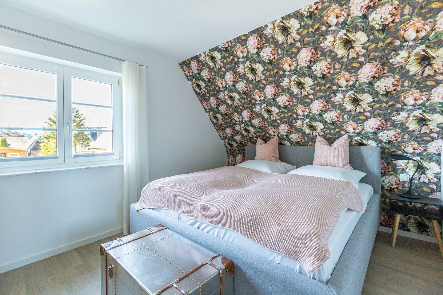 Die Obergeschosswohnung macht ihrem Namen alle Ehre. Zarte, helle Farben, hochwertige Möbel und eine liebevolle Dekoration machen dieses Urlaubsdomizil zum absoluten Lieblingsplatz. Ein besonderes Highlight ist die großzügige Sauna. Vor allem an kalten rauen Ostseetagen ist es ein Genuss, wohltuende Wärme und Erholung in den eigenen vier Wänden zu genießen. Eine Tür weiter befindet sich der Wohnraum mit Essbereich auf der linken und ein gemütliches Sofa vorm TV auf der rechten Seite. Die große Fensterfront mit Zutritt zum Balkon lässt viel Sonnenlicht rein. Zusammen mit den pastelligen Tönen des Interieur erhält der Raum dadurch eine besondere Leichtigkeit. Die Küche befindet sich gegenüber vom Wohnzimmer und fügt sich ganz harmonisch in das stylische Wohnkonzept ein. Hier kann nach Herzenslust gekocht werden. Das macht dank der hochwertigen Geräte und komfortablen Ausstattung besonders viel Spaß. Himmlisch betten lässt es sich in dem stillvollen Schlafzimmer der Wohnung. Es ist der perfekte Rückzugs- und Erholungsort nach einem ereignisreichen Urlaubstag. Vervollständigt wird die wunderschöne Wohnung durch ein modernes Tageslichtbad mit großer Regendusche.