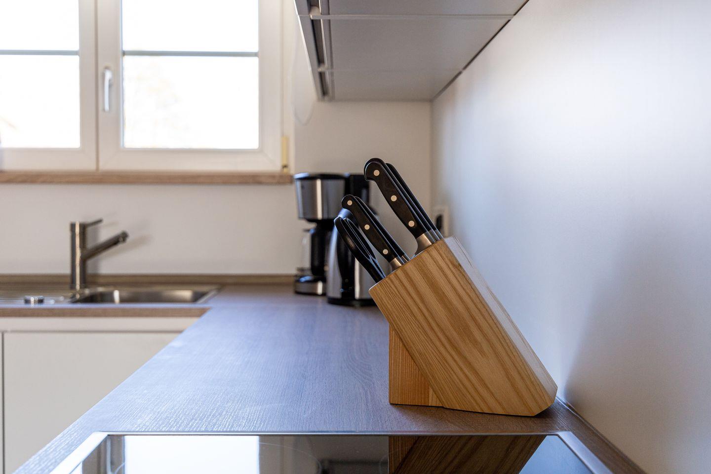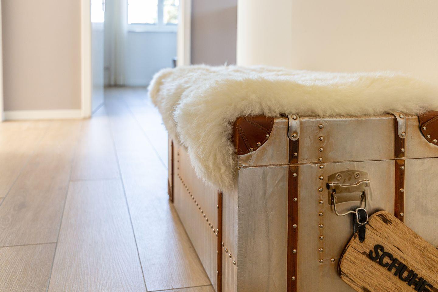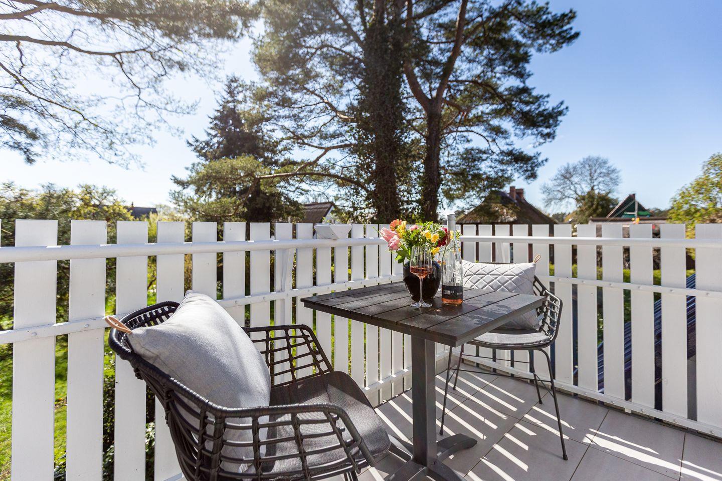 Der Balkon begeistert mit einer modernen Balkonbestuhlung und einem herrlichen Blick ins Grüne. Ob der erste Kaffee des Tages oder einfach ein gutes Glas Wein am Abend – hier kann man die Seele baumeln lassen und einfach Zeit genießen. Es gehört ein PKW-Stellplatz zur Wohnung und einen gemeinschaftlich genutzten Schuppen für Fahrräder. Wir wünschen schon jetzt einen erholsamen Urlaub im Lieblingsplatz.