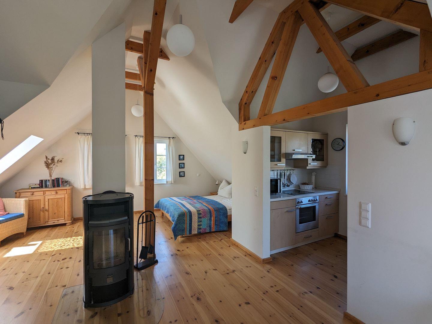 Diese kleine Wohnung besticht durch ihre Fachwerkausstattung und lädt ein zu