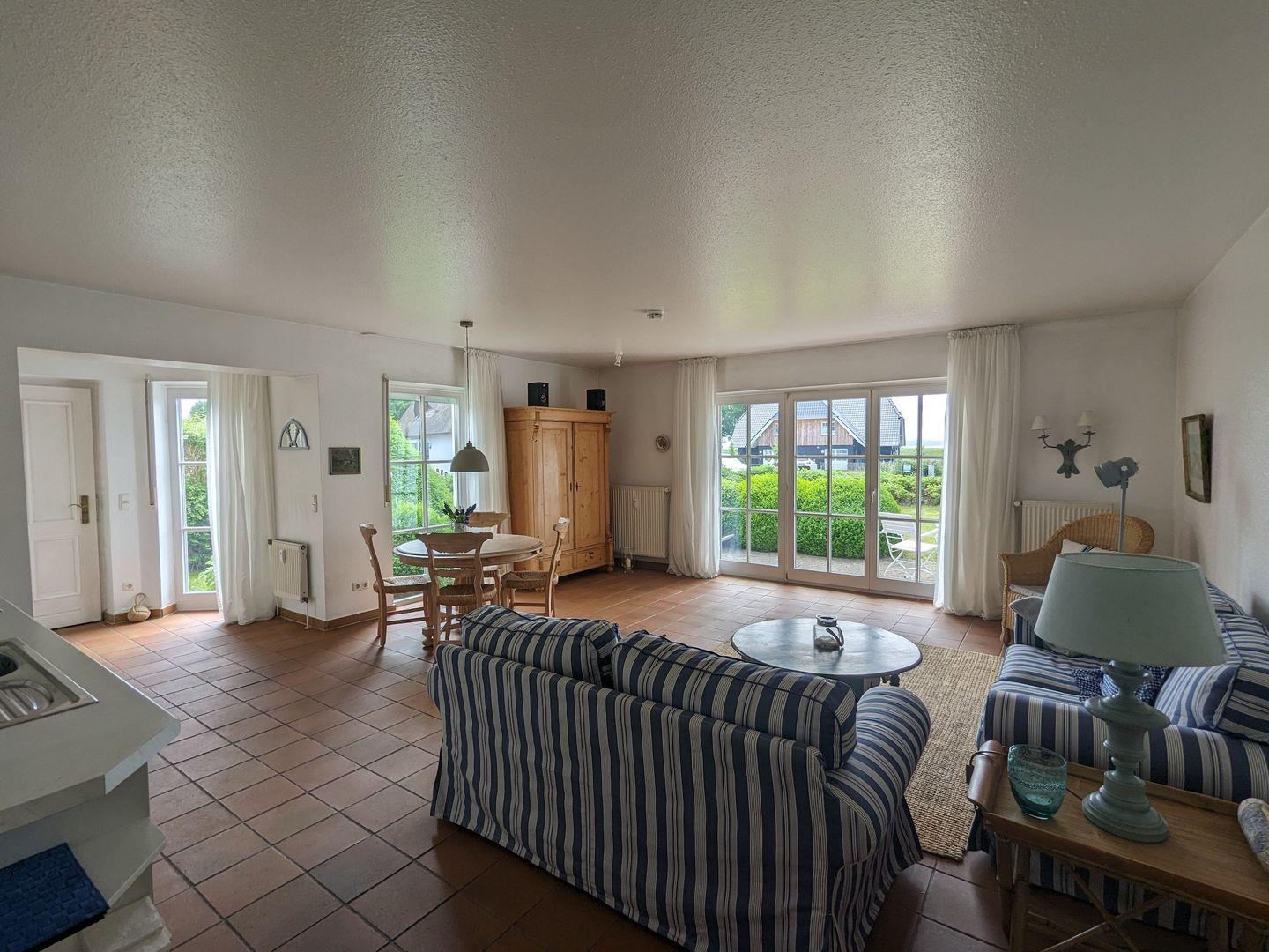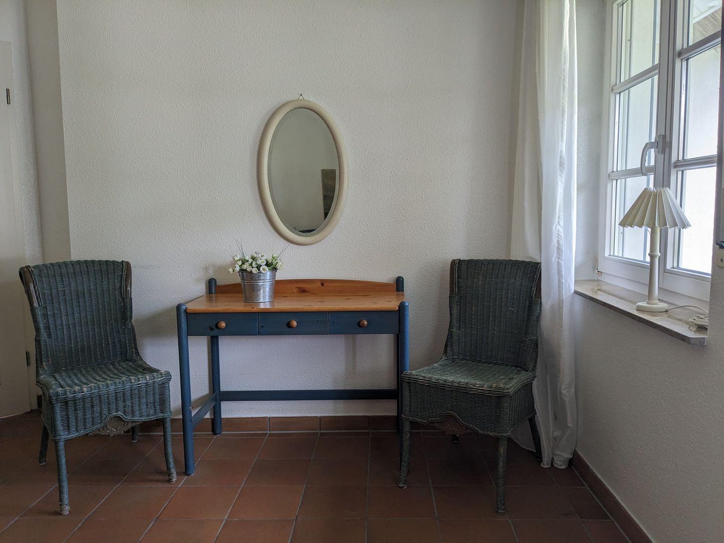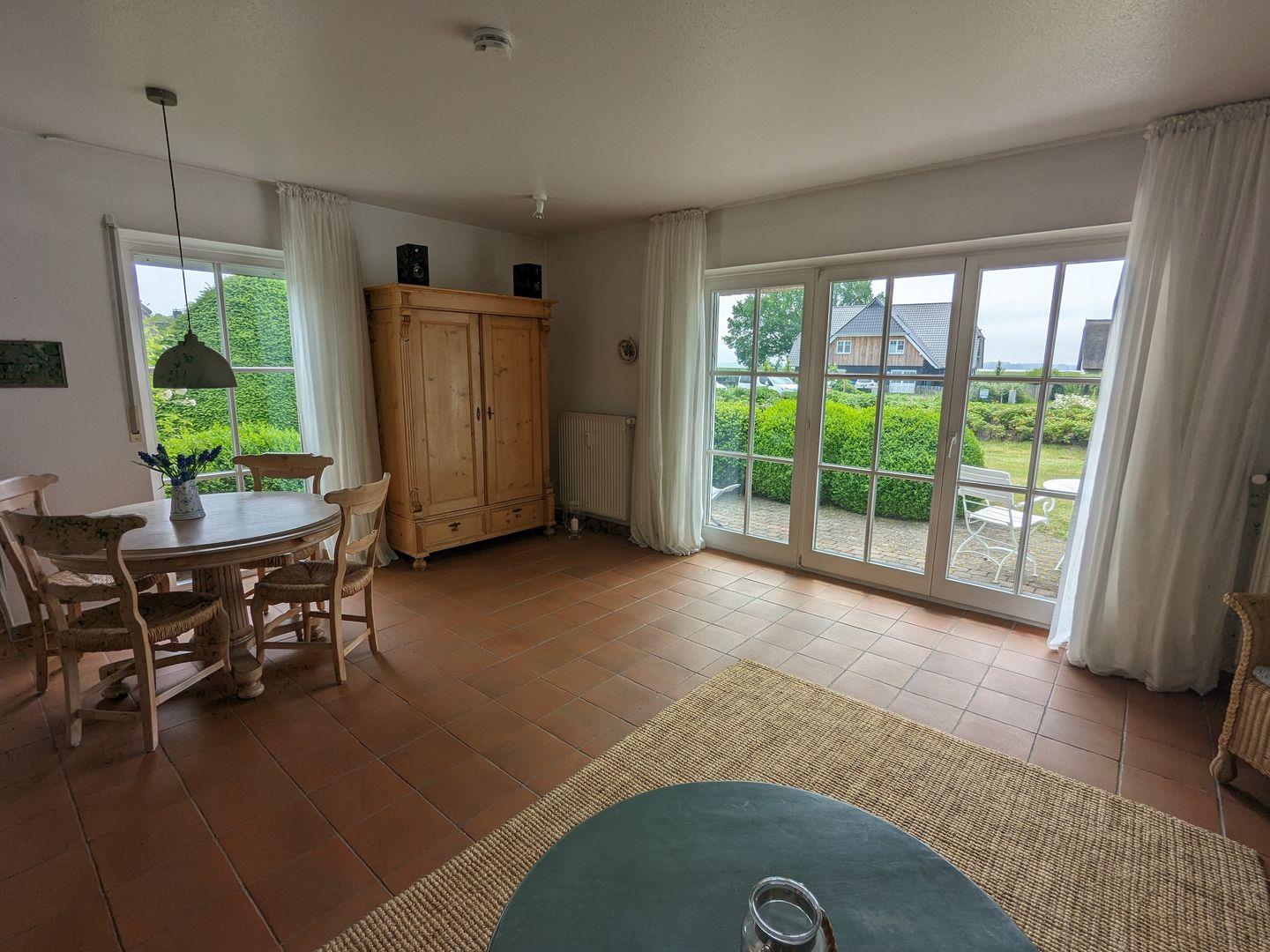 Diese gemütliche und großzügige Wohnung lädt mit ihrem wunderschönen Garten, umgeben von einem Heckenrosenwall, zum Entspannen ein. Lassen Sie auf der Südterrasse Ihre Seele baumeln oder genießen Sie den Boddenblick. Nur wenige Schritte sind es zur Badestelle am idyllischen Bodden. Einkaufsmöglichkeiten, Restaurants und Cafés sind nicht weit entfernt. Zur Wohnung gehört ein abschließbares Gartenhäuschen, in dem Sie nach einer ausgiebigen Radtour durch den Darßer Urwald , Ihr Rad sicher abstellen können.