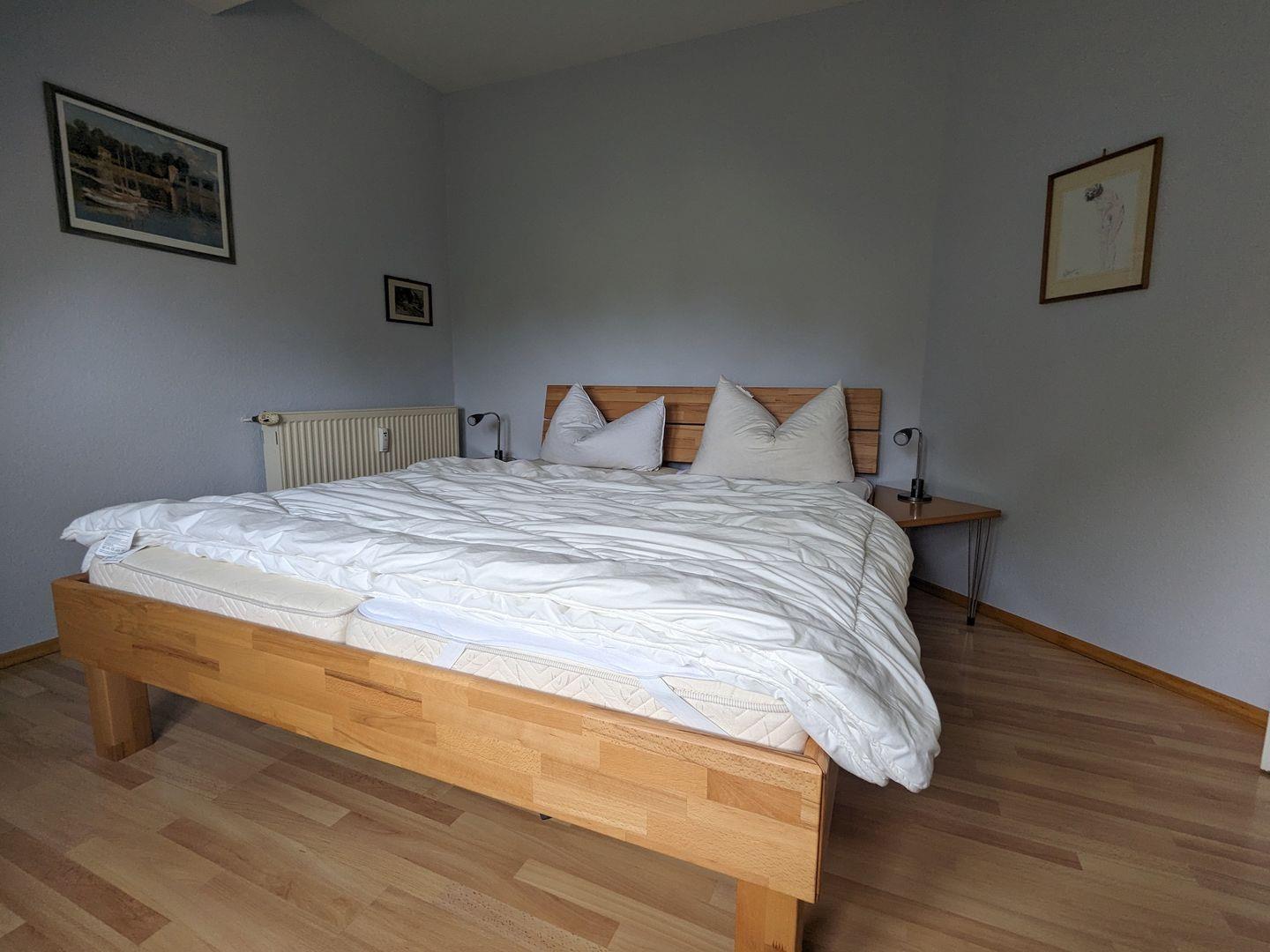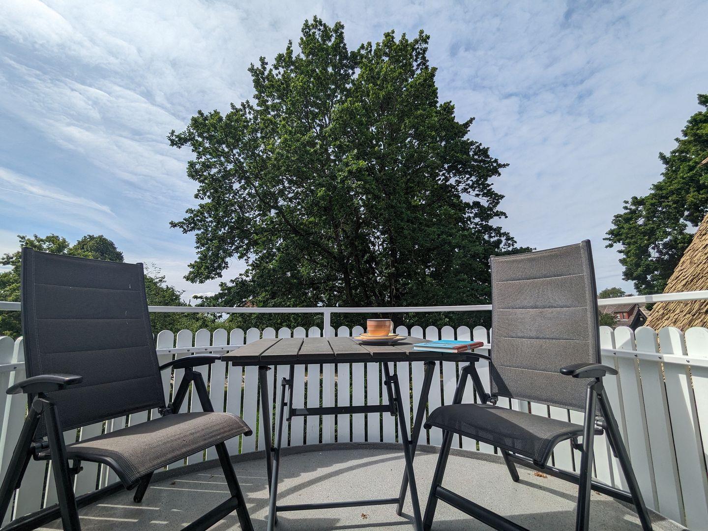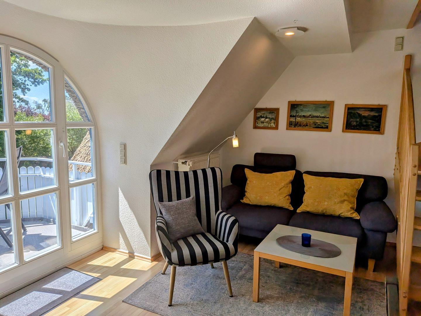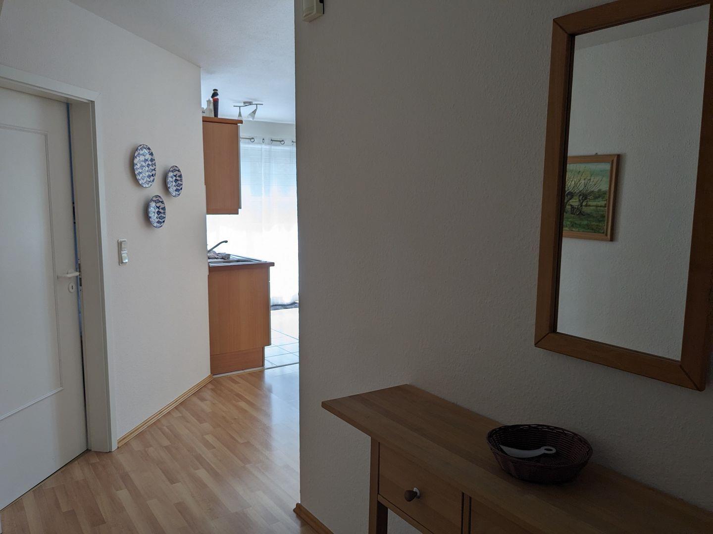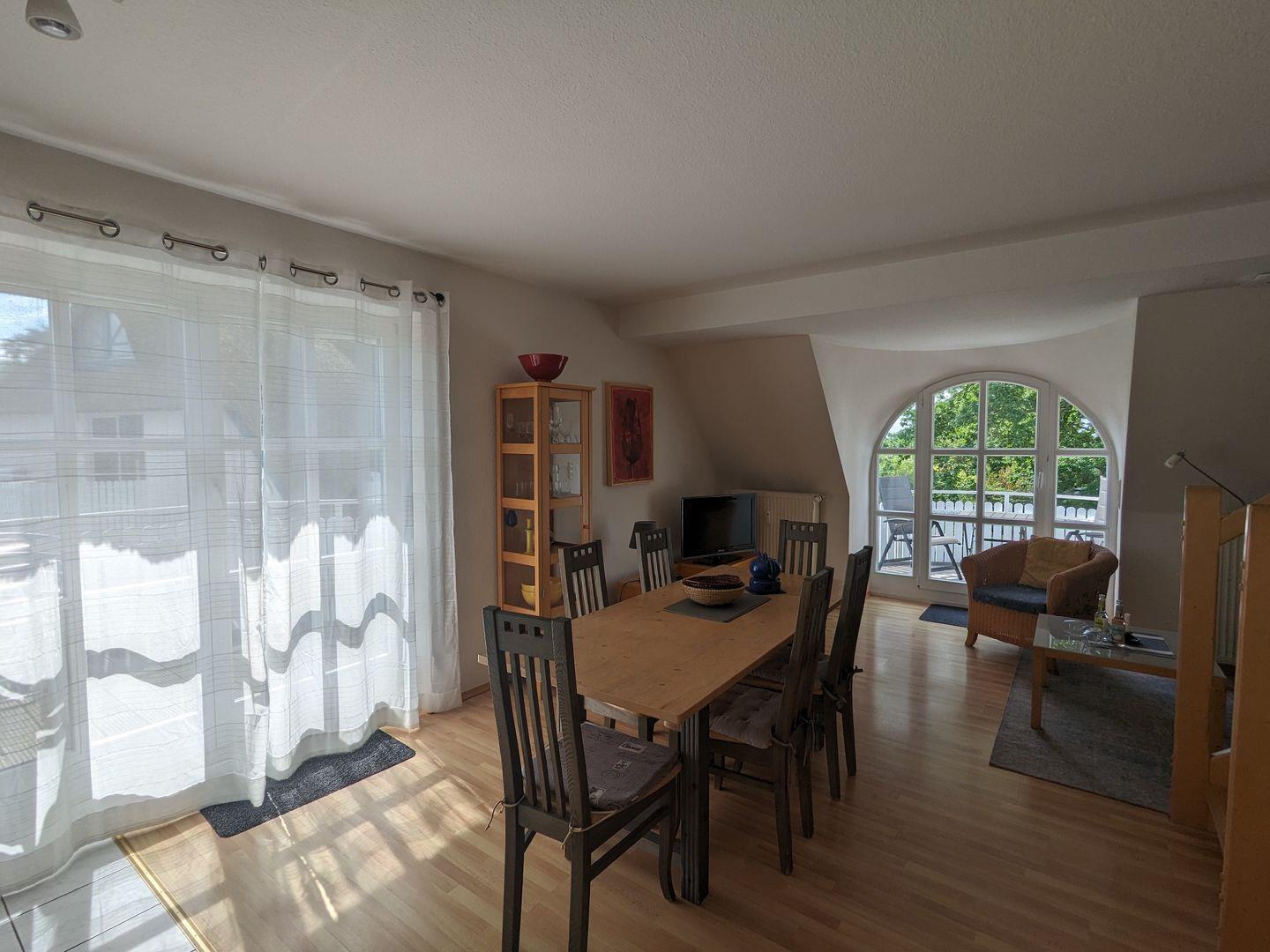 Diese helle und freundliche Wohnung im Obergeschoss bietet Platz für bis zu 4 Personen. Ihnen steht ein Wohn- und Essbereich mit 2 Balkonen sowie 2 Schlafzimmer zur Verfügung. Ein Schlafzimmer befindet sich auf der Wohnebene und eine zweies Schalfzimmer in der offenen Galerie unter dem Dach. Zur Wohnung gehört ein PKW-Stellplatz sowie ein kleines abschließbares Gartenhäuschen. Beide Balkone sind mit Gartenmöbel ausgstattet.