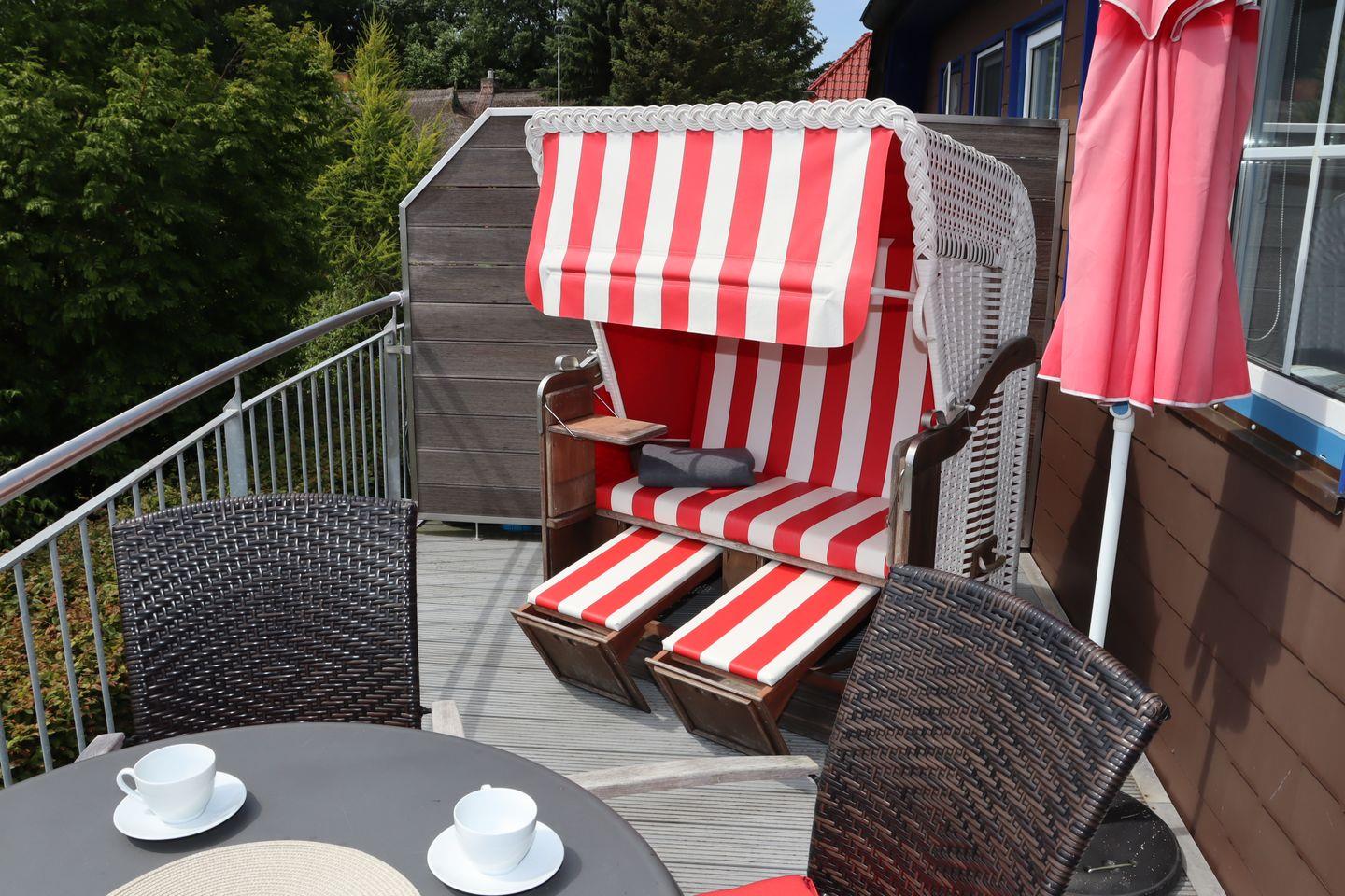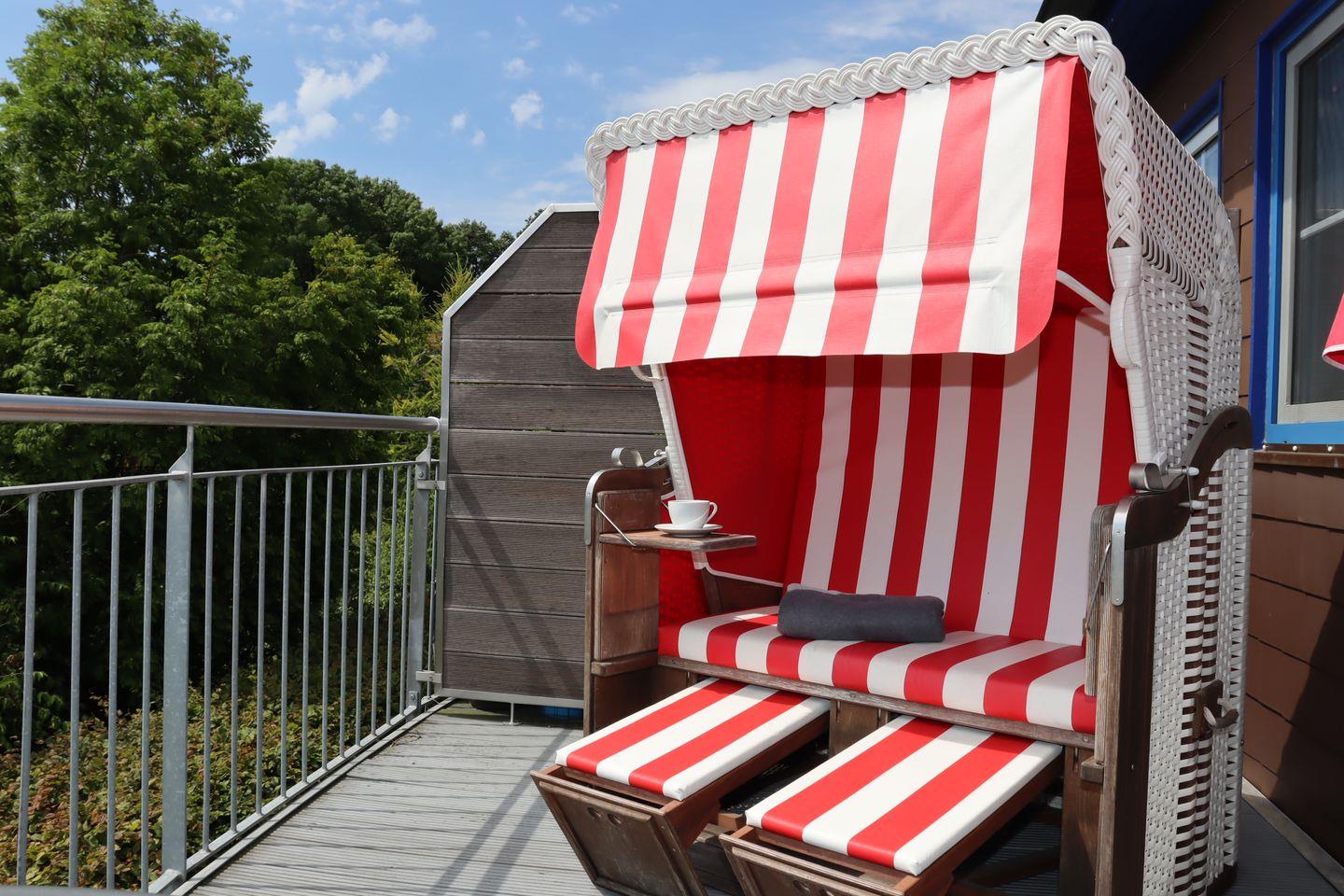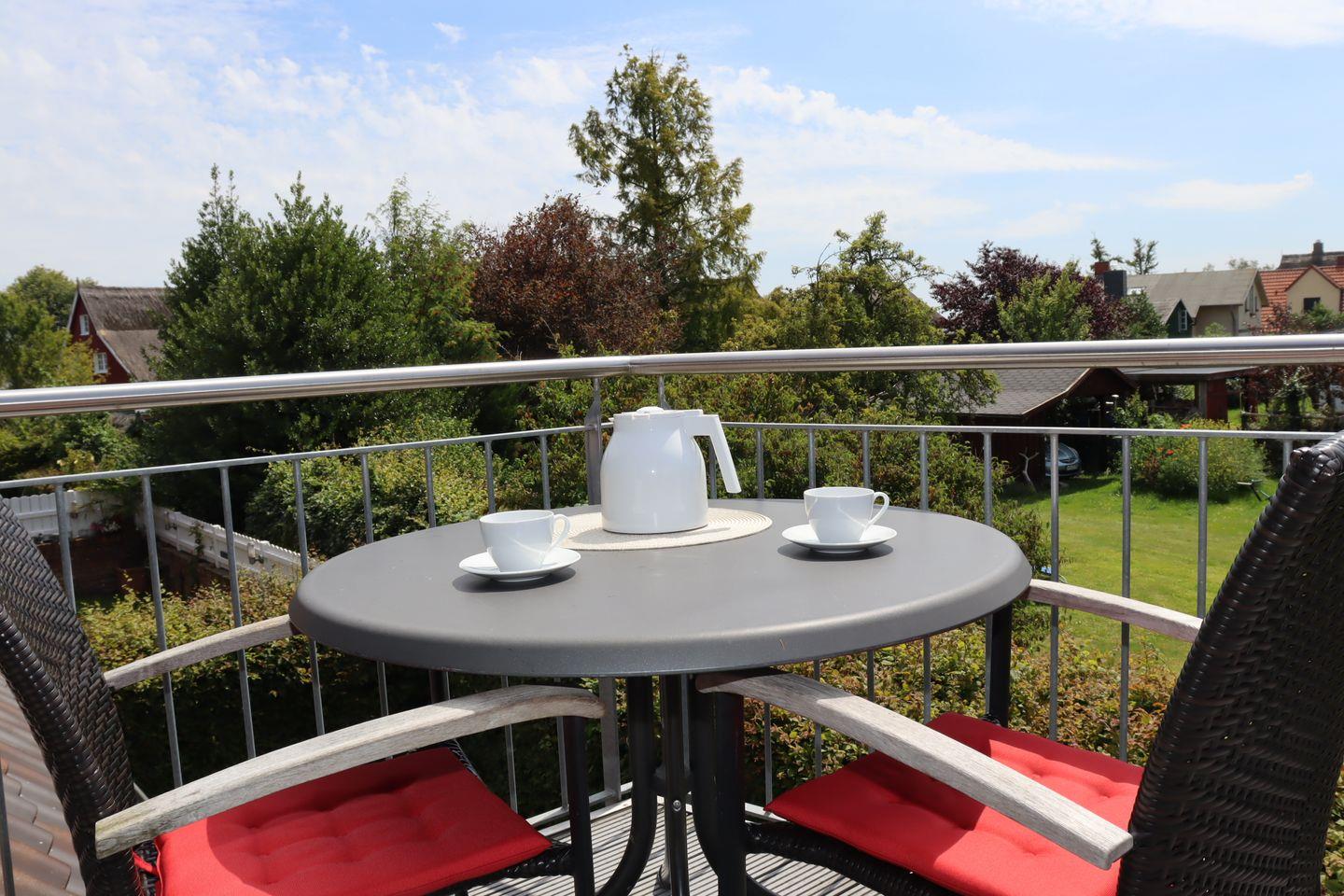 Ein besonders Highlight der Wohnung ist der Balkon, auf dem Sie den Blick ins Grüne genießen können. Hier können Sie bei einer Tasse Kaffee dem Gesang der Vögel lauschen oder einfach die frische, ländliche Luft tanken. Für Ihren privaten Komfort sorgen zudem Gartenmöbel und ein Sonnenschirm, ideal für entspannende Stunden im Freien.