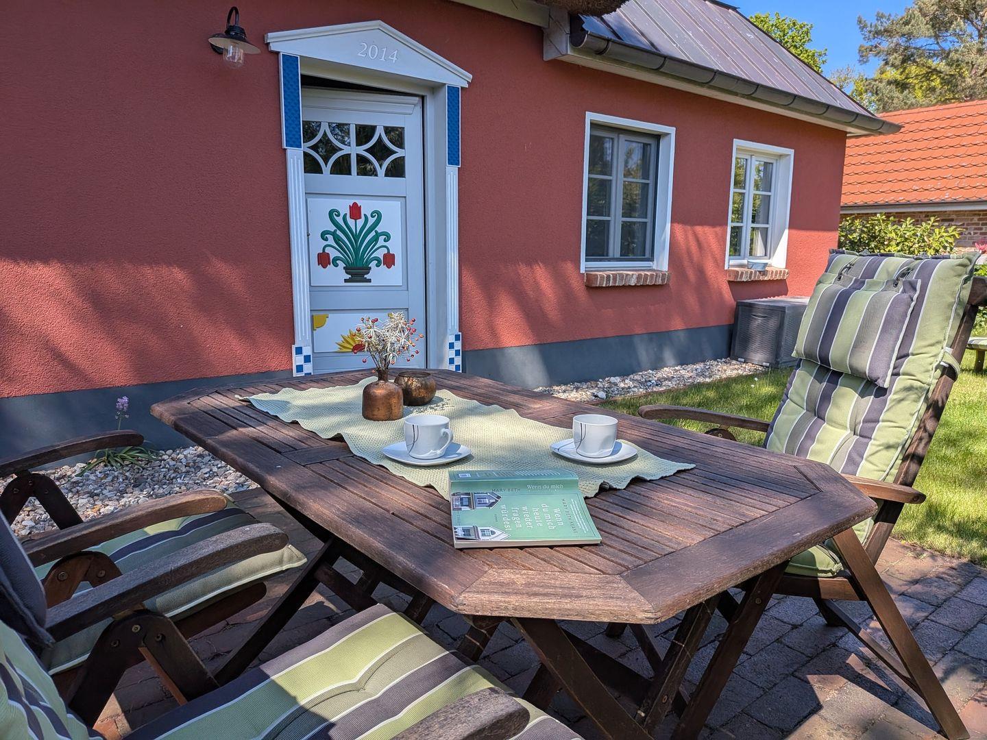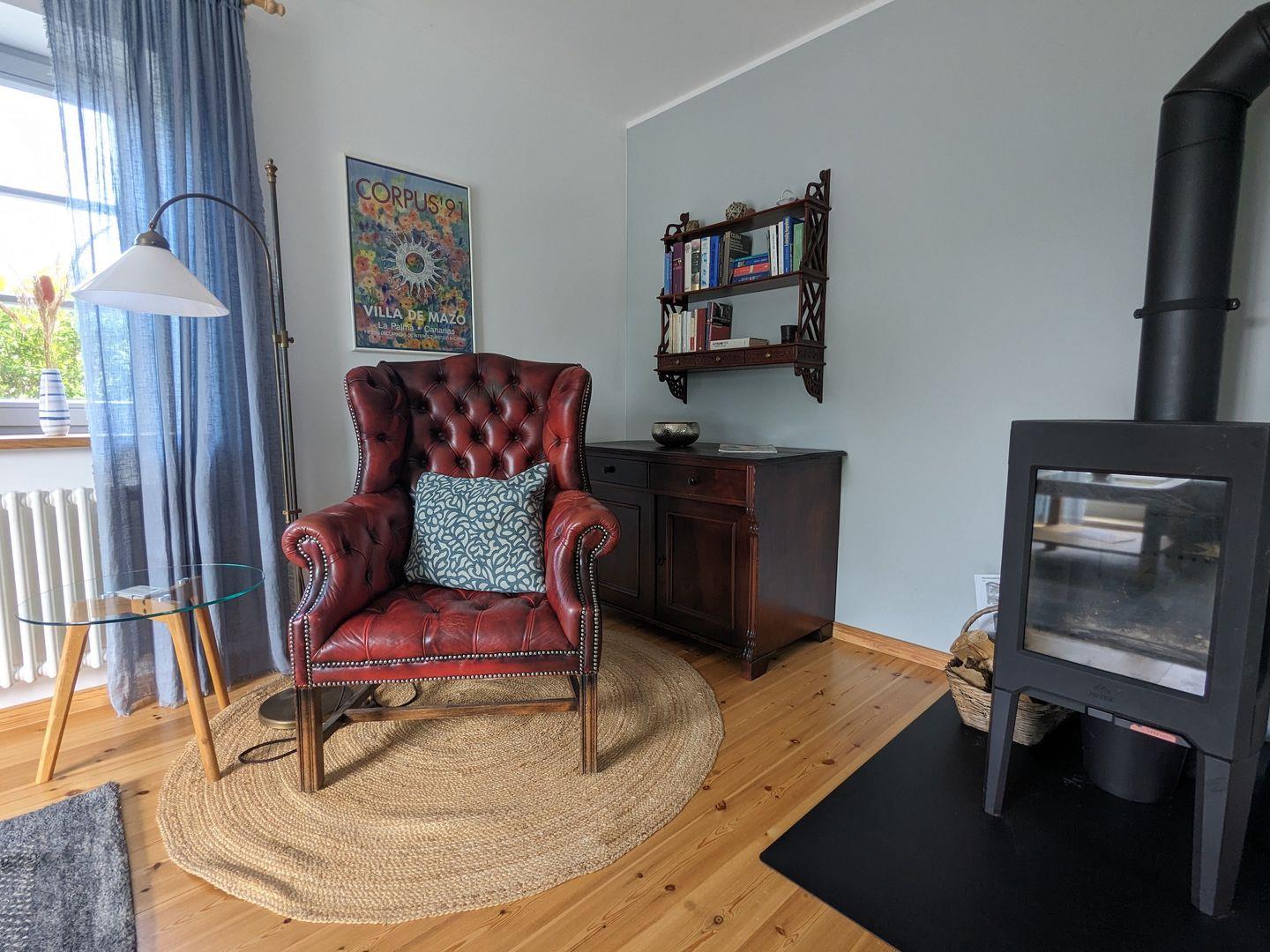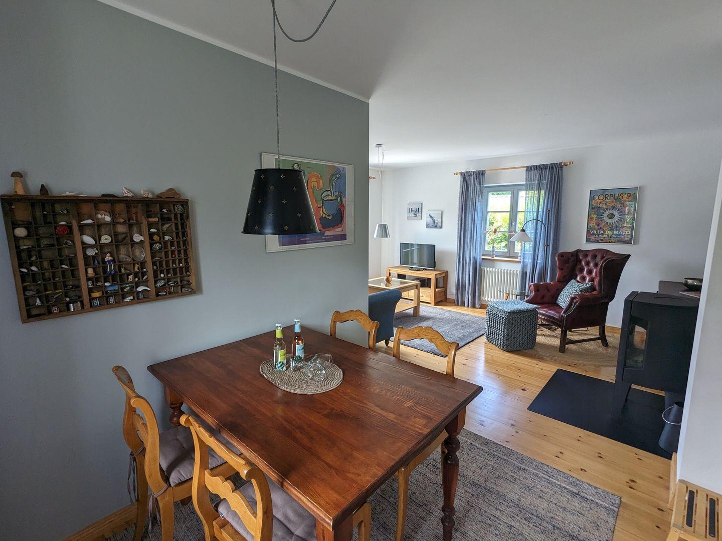 Die Ferienwohnung "Boje" in der Chausseestraße verfügt über zwei Terrassen und einen kleinen feinen Garten. In der kühleren Jahreszeit wärmt auch der Kamin und die geschmackvollen und individuellen Möbel der Wohnung tragen ihr Übriges zur Behaglichkeit bei.Unweit der Wohnung befindet sich eine Badestelle direkt am Bodden, ein Restaurant und auch ein Handwerksgeschäft mit genähten schönen Dingen aus Segeltüchern.