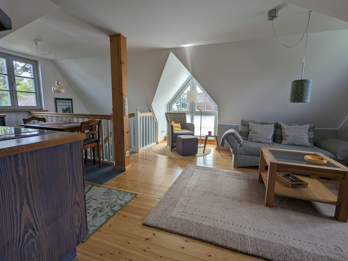 Die "Spiere" verfügt über eine sehr großzügige Dachterrasse und ist somit hervorragend geeignet für ein Frühstück an einem schönen Sommermorgen oder für ein Glas Wein an einem lauen Abend. Die hochwertige Ausstattung und die zentrale Lage im Dorf sind gute Voraussetzungen für einen entspannten Urlaub zu zweit. Die Boddenbadestelle ist naheliegend und rasch zu Fuß zu erreichen. Mit dem Rad erkunden Sie doch mal unser schönes Born oder melden Sie sich bei der Touristeniformation zu einer Ortsführung an...