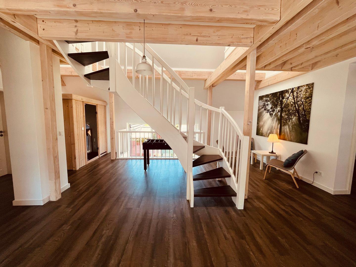 Das großzügige Ferienhaus Niege Schüün in Born bietet auf 220 m² Platz für bis zu 12 Gäste in sechs Schlafzimmern, vier Badezimmern und einem Gäste-WC. Zur gehobenen Ausstattung gehören Sauna, Kamin, moderne Küche, WLAN, Terrasse mit Gartenmöbeln und Grill, Diese tolle Unterkunft ist Ideal für Familien und Gruppen geeignet.