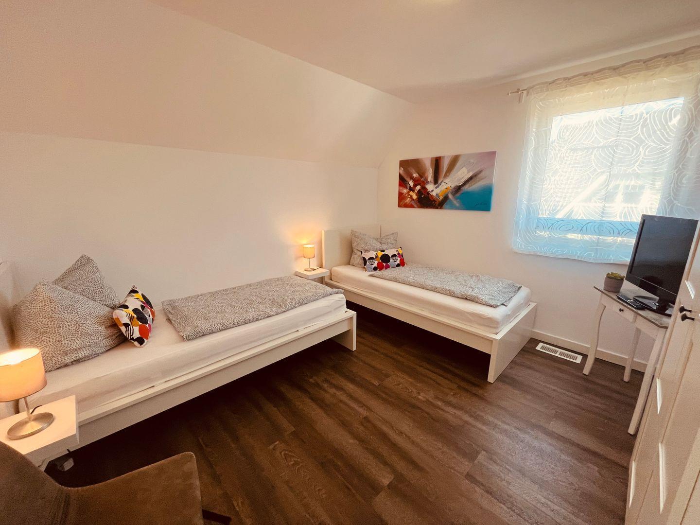 jeweils einem Doppelbett, sowie ein Schlafzimmer mit zwei Einzelbetten. Zwei