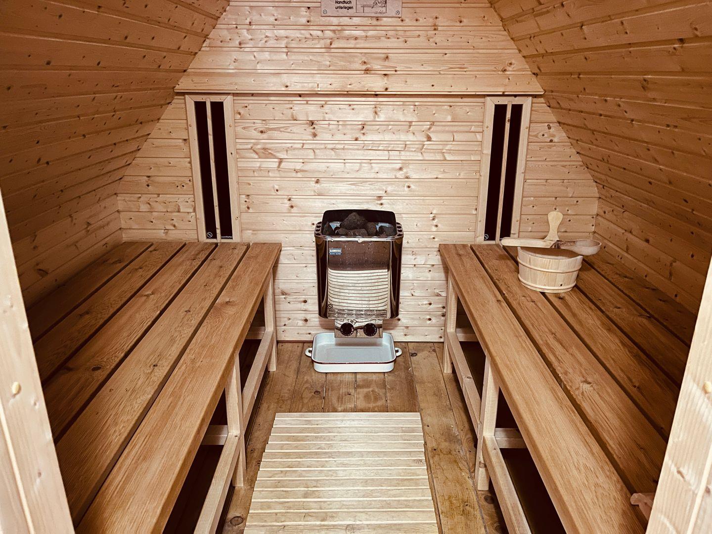 Eine Sauna steht zur gemeinschaftlichen Nutzung gegen eine Gebühr im Dachboden des Ferienhauses zur Verfügung.