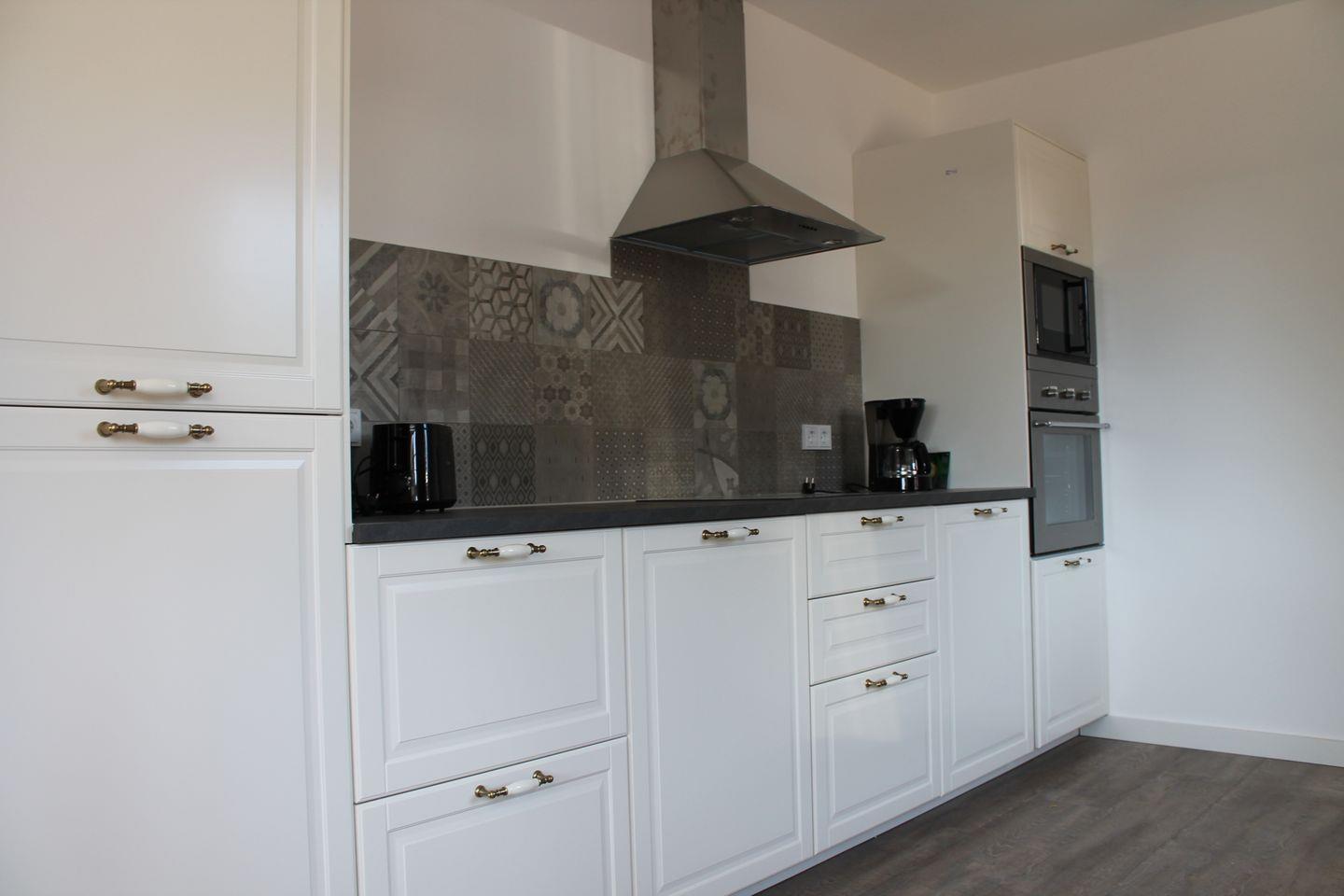 Sofas, einer angrenzenden vollausgestatteten Küche mit Herd, Backofen,