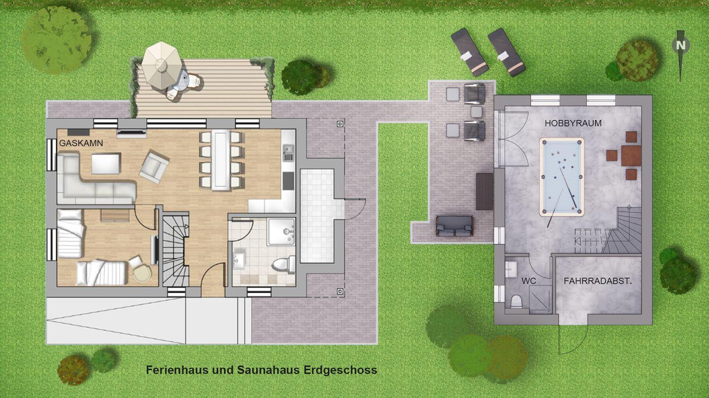 Schnelles Internet (Glasfaser) ist vorhanden. Ein Spiel- und Saunahaus mit