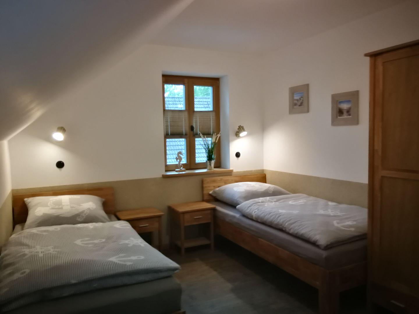 durchgängig) und Blick auf den Bodden, sowie ein Zimmer mit zwei Einzelbetten