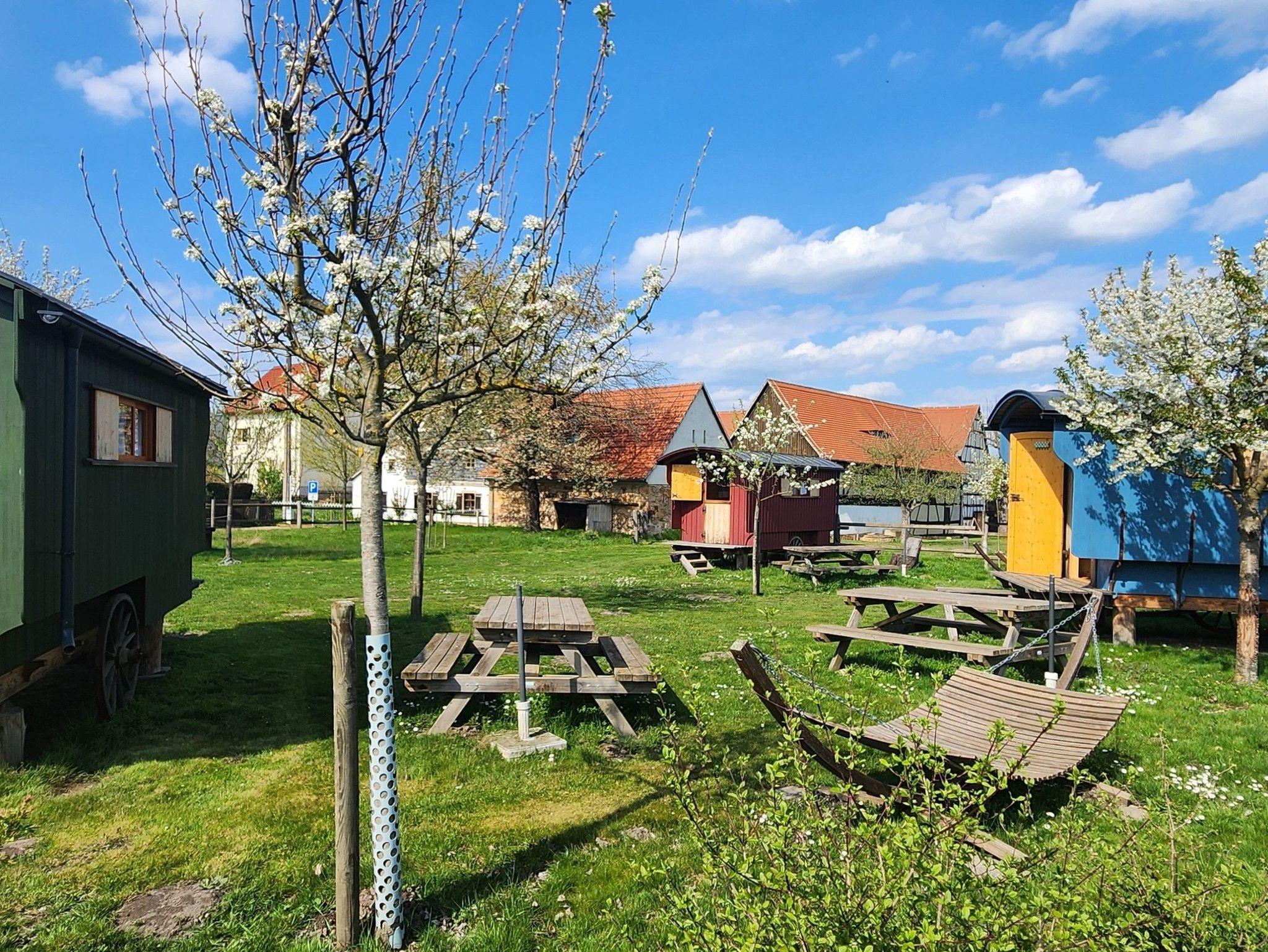 Die 3 Schäferwagen bieten ein uriges Übernachtungserlebnis mitten auf der schönen Streuobstwiese, über der nachts noch die Sterne funkeln und Fuchs und Hase persönlich zum Gute-Nacht-Sagen vorbeikommen.