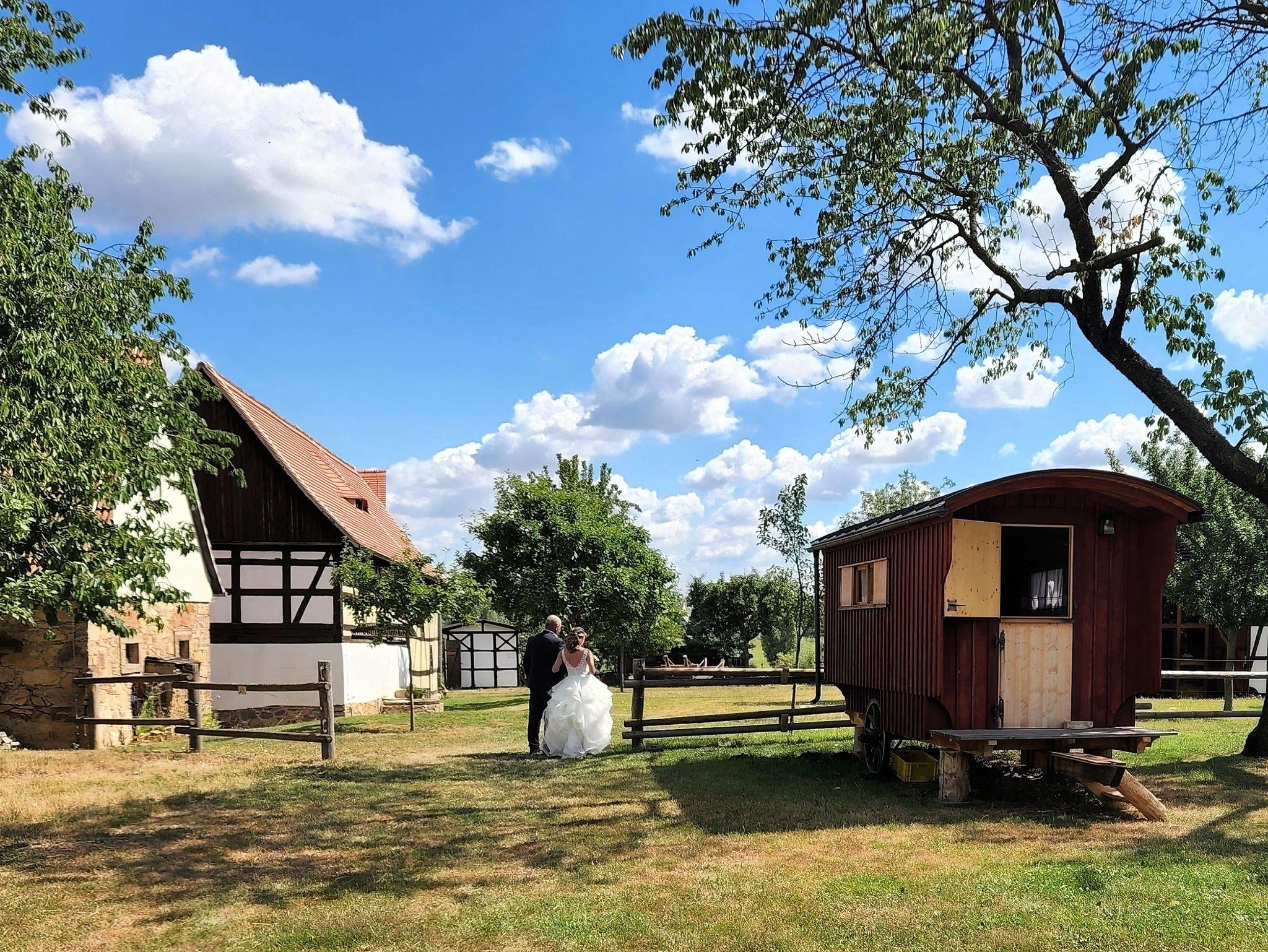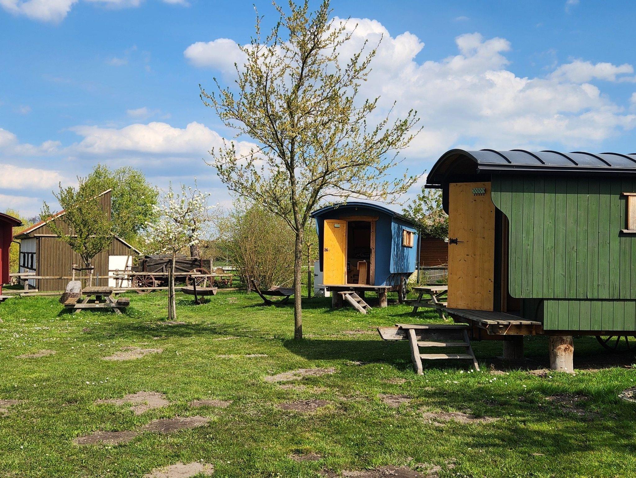 Die 3 Schäferwagen bieten eine ganz besondere Übernachtungsform im Leipziger Neuseenland. Sie gehören zum Geschichtenhof Wyhra – einem Museumshof mit Wohnhaus, Scheune, Stall, Bauerngarten und Wiesenflächen, der im Wesentlichen im Zustand um 1900 erhalten ist. In der Ausstellung erzählen die ehemaligen Bewohner des Hofes aus ihrem Leben. So taucht der Besucher ein in ein Panorama der bäuerlichen Lebenswelt anno 1900.