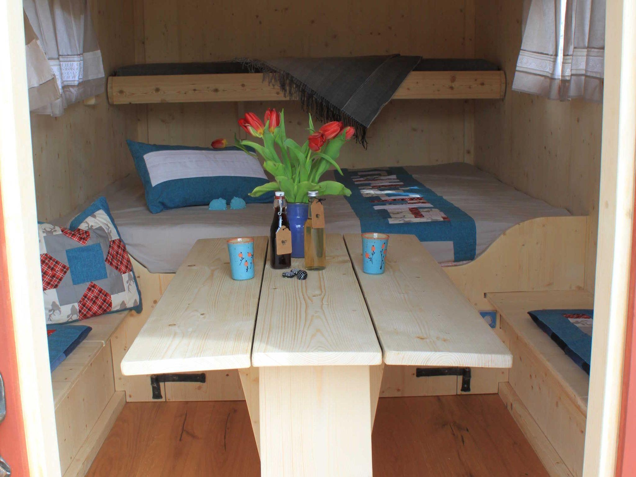 Bitte beachten Sie, dass der Stauraum in den Schäferwagen begrenzt ist und nicht für große Taschen ausgelegt ist.