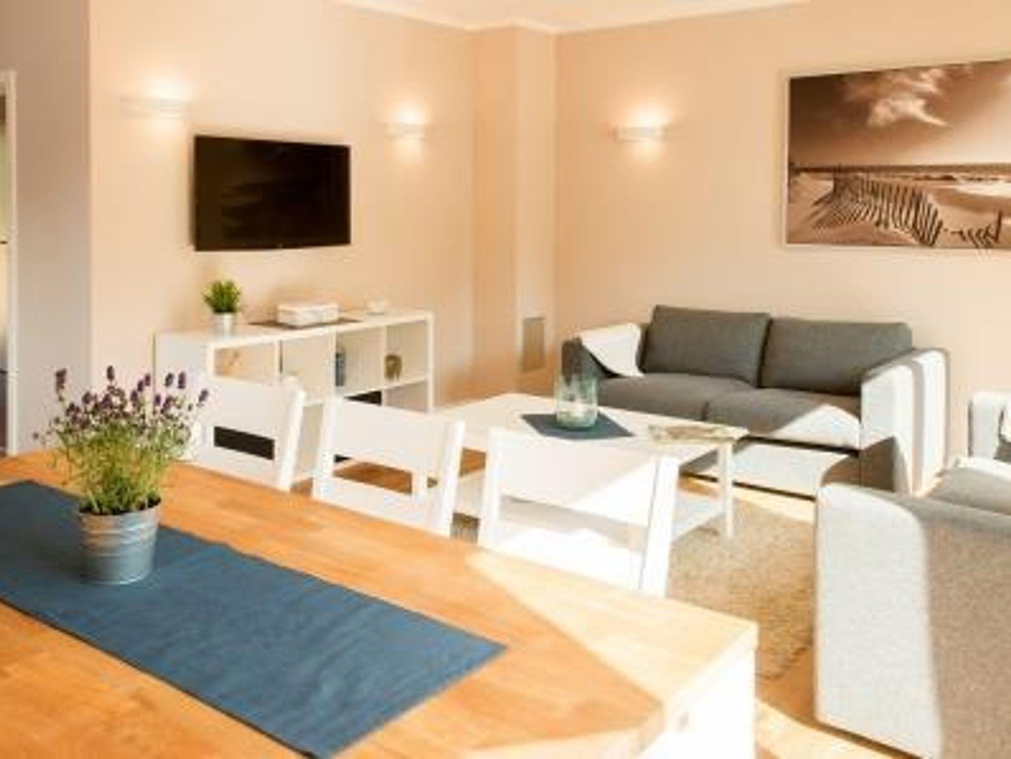 In den jeweils modern eingerichteten 110 qm Doppelhaushälften befinden sich im 1. OG ein Vollbad, ein Schlafzimmer mit Doppelbett 1,80× 2,00 Meter mit TV, ein Schlafzimmer mit Doppelbett 1,60× 2,00 Meter sowie ein Zimmer mit zwei Einzelbetten 0,90× 2,00 Meter.