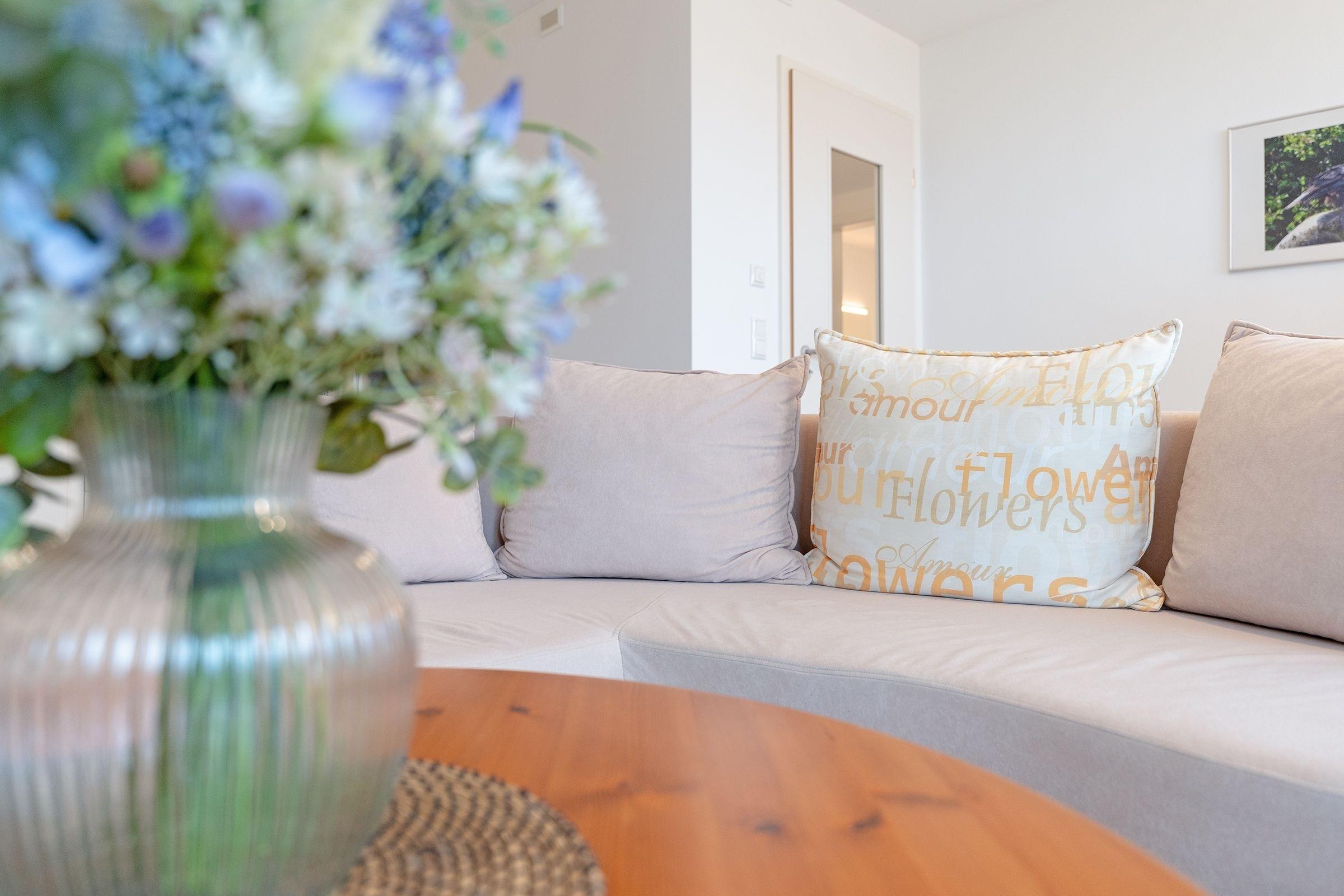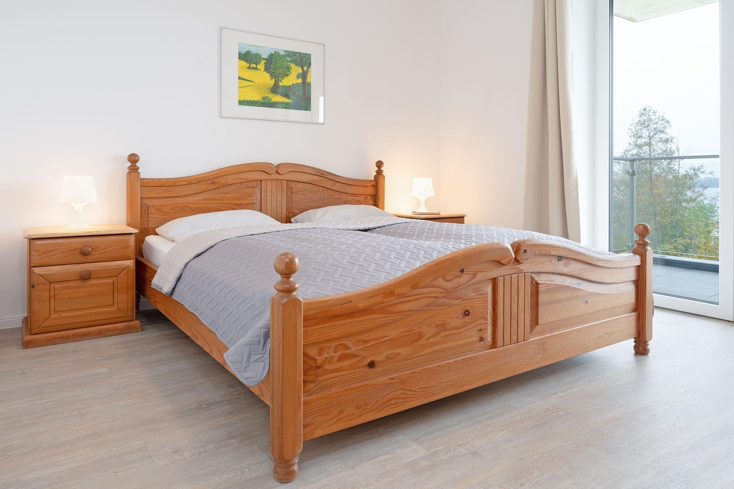 Durch die Hanglage, vom See aus gesehen, liegt die Wohnung im ersten Stock, auf der Seite des Einganges hingegen liegt sie im Erdgeschoss. Sie ist also ohne Treppen zu erreichen. Diese Ferienwohnung im Herzen der Holsteinischen Schweiz, bietet Ihnen eine komfortable Unterkunft für einen erholsamen Urlaub in der Natur. Der helle Wohnbereich lädt mit einem gemütlichen Sofa, TV und WLAN zum Entspannen ein. Vom Wohnbereich aus gelangen Sie auf den großen, überdachten Balkon mit traumhaftem Seeblick, der nach Südwesten ausgerichtet ist – perfekt, um die schöne Landschaft zu genießen. Die offene Küche ist komplett ausgestattet mit Ceranherd, Backofen, Kühlschrank mit Gefrierfach, Mikrowelle und Kaffeemaschine. Der Essbereich bietet Platz für gemeinsame Mahlzeiten. Die Ferienwohnung verfügt über zwei Schlafzimmer, in denen jeweils ein Doppelbett zum Träumen einlädt. Kleiderschränke bieten Stauraum für Ihre Urlaubsgarderobe.