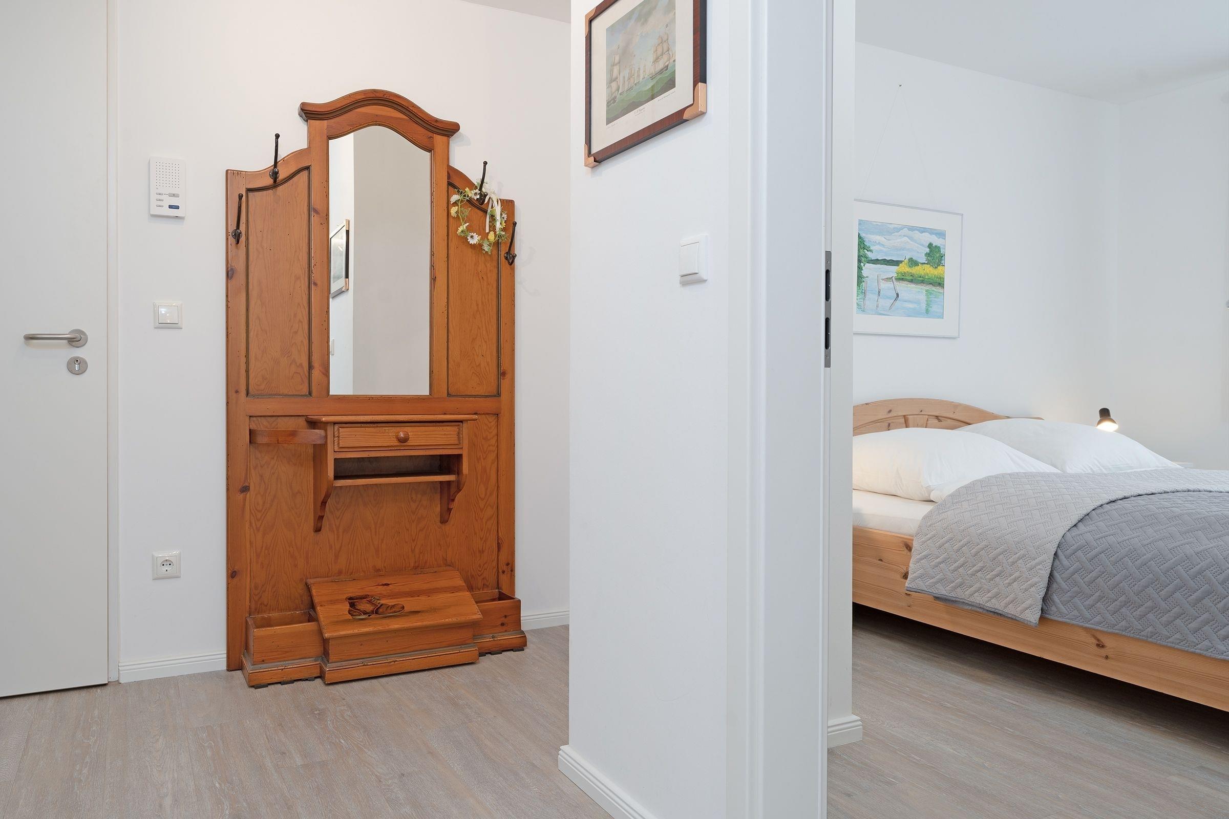 Schlafzimmer 1: 1 Doppelbett (180x200 cm), Kleiderschrank, Verdunkelung: Vorhänge, kein Platz für ein Babybett vorhanden