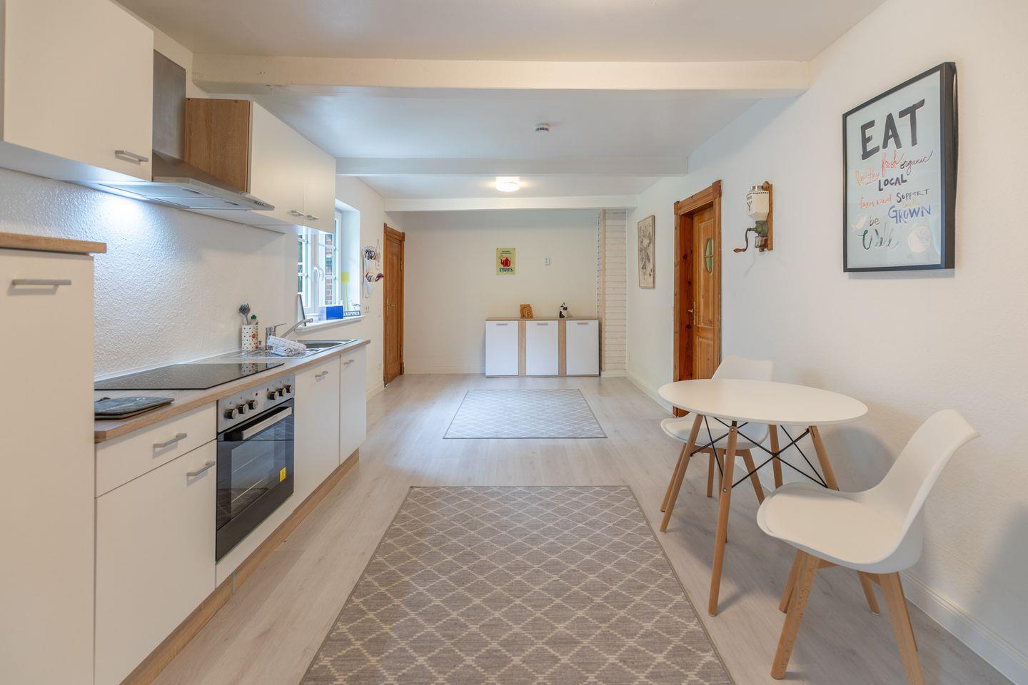 Das Reethus Nordwest erstreckt sich über großzügige 170 m² und bietet Platz für bis zu vier Gästen. Mit zwei Schlafzimmern, einem gemütlichen Wohnzimmer und einem geräumigen Esszimmer garantiert es ausreichend Raum für entspannte Stunden. Ein Gäste-WC sowie ein voll ausgestattetes Badezimmer mit Dusche und Badewanne sorgen für zusätzlichen Komfort und Bequemlichkeit. Die Ausstattung des Reethus lässt keine Wünsche offen. Die voll ausgestattete Küche verfügt über moderne Geräte wie Herd, Backofen, Mikrowelle und Kühlschrank, um all Ihre kulinarischen Bedürfnisse zu erfüllen. Sie finden zudem eine Kaffeemaschine, einen Wasserkocher, einen Toaster sowie ausreichend Geschirr und Besteck. Im angrenzenden Essbereich können Sie gemeinsam essen und die geselligen Stunden genießen.