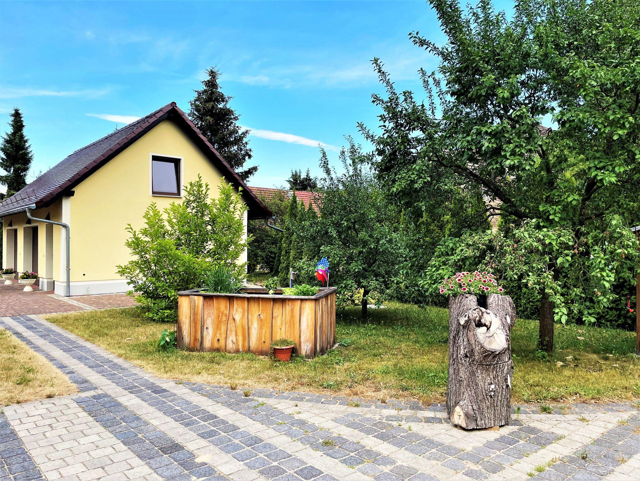 Erbaut wurde das Gastgeberhaus im Jahr 2000, die Ferienwohnung an der Linde befindet sich in der oberen Etage und ist über eine Treppe begehbar. Eine verschließbare Unterstellmöglichkeit für mitgebrachte Fahrräder und ein kostenloser Parkplatz für den PKW ist auf Grundstück vorhanden. Kinder sind herzlich willkommen und können sich auf verschiedene Spielgeräte freuen. Gegen eine kleine Gebühr können Gäste einfache Fahrräder ausleihen. An der großen Linde befindet sich der Grillplatz mit einer Grillhütte und einer gemütlichen Sitzhütte.