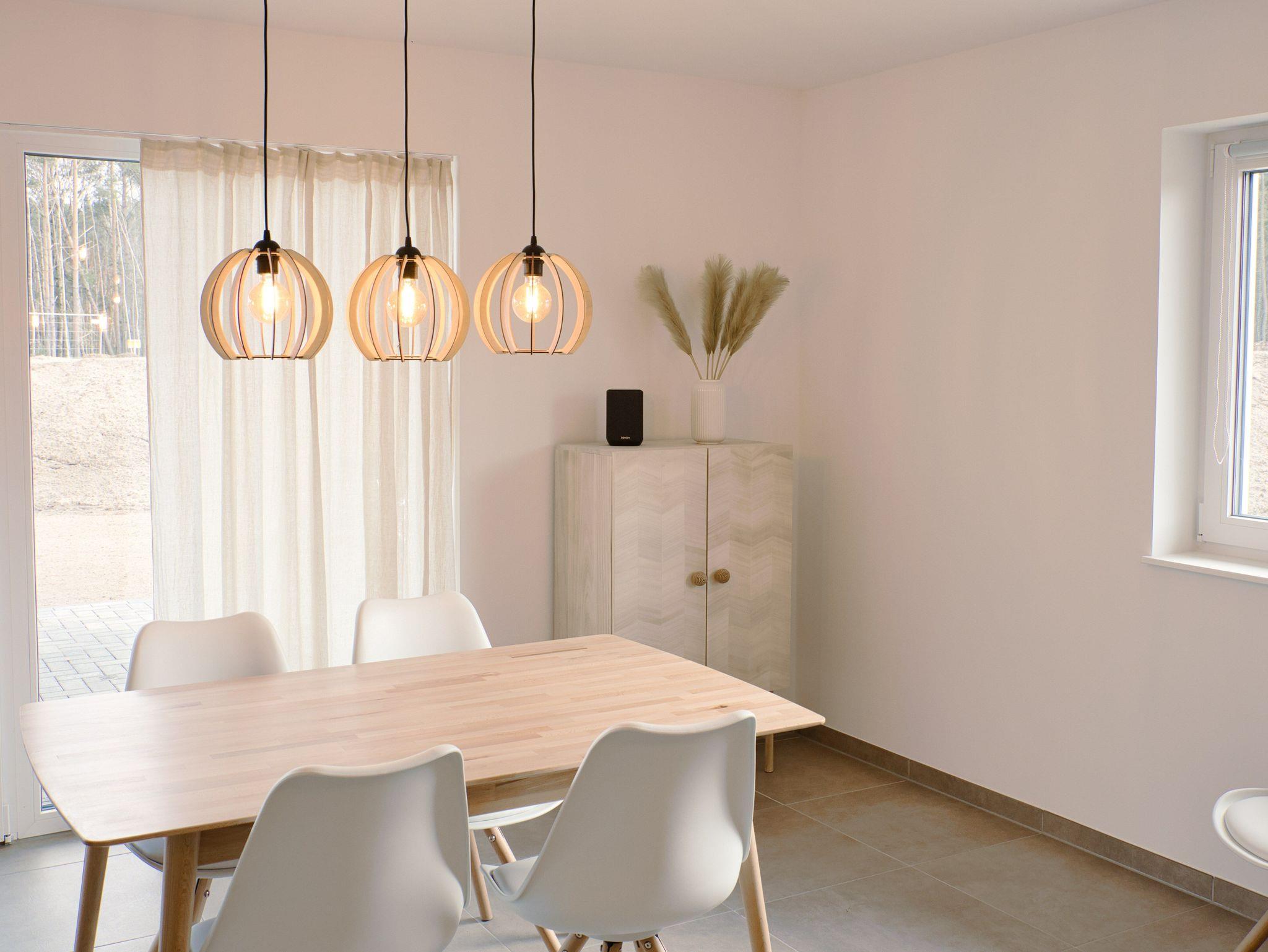 In der gut ausgestatteten Küche mit Induktionsherd und Backofen wird selbst das Zubereiten von leckeren Gerichten ein echtes Erlebnis für dich. Im angrenzenden Essbereich schafft die helle Fensterfront wahre Wohlfühl-Atmosphäre. Der Esstisch sowie die gemütliche Sofaecke finden hier ihren Platz, außerdem ein 55 Zoll Fernseher mit Smart-TV. Liebevolle Details fügen sich in die skandinavische Raumgestaltung ein. Im gesamten Ferienhaus kannst du kostenfreies WLAN (bis zu 250 MBit/s) nutzen.