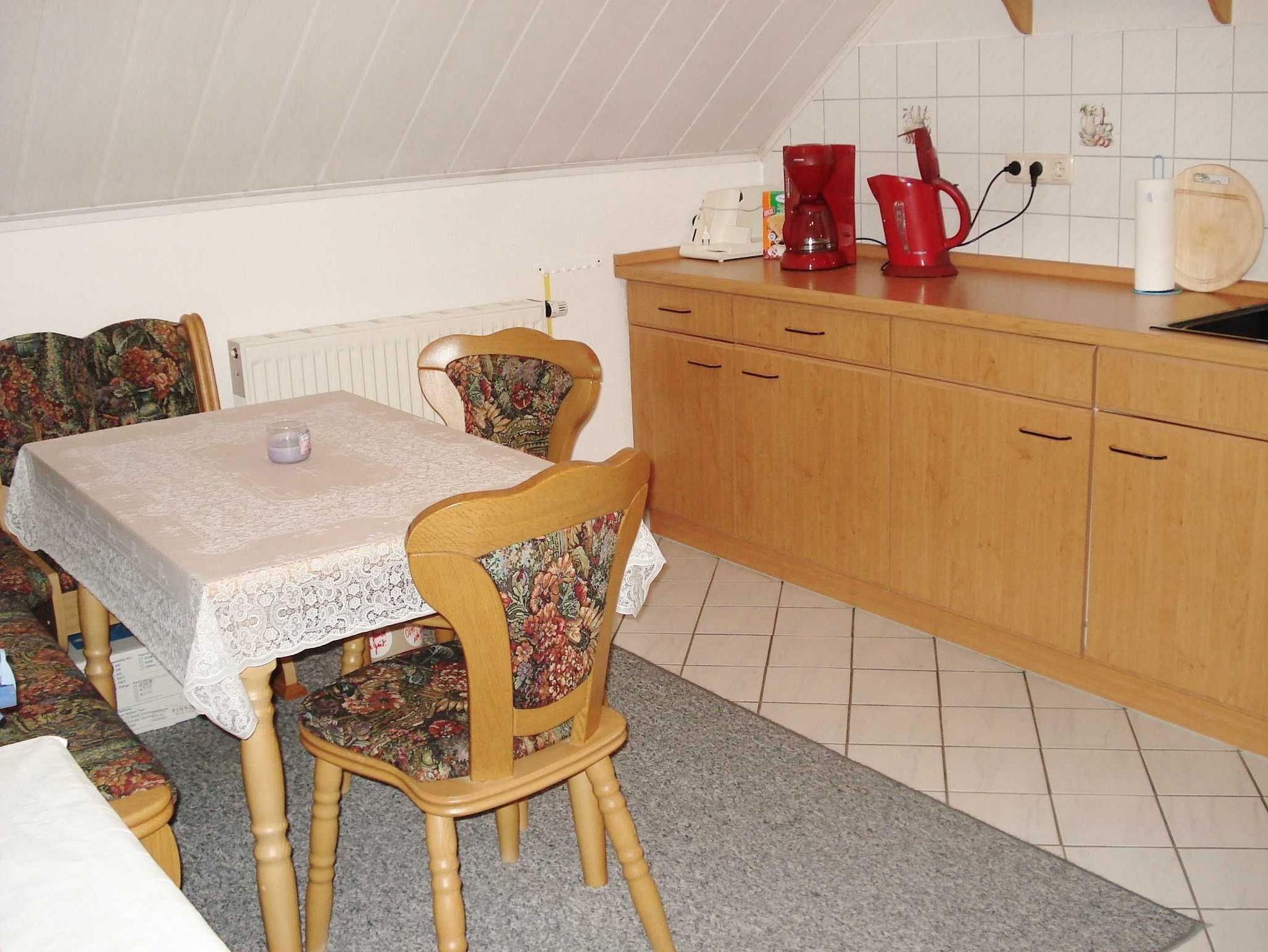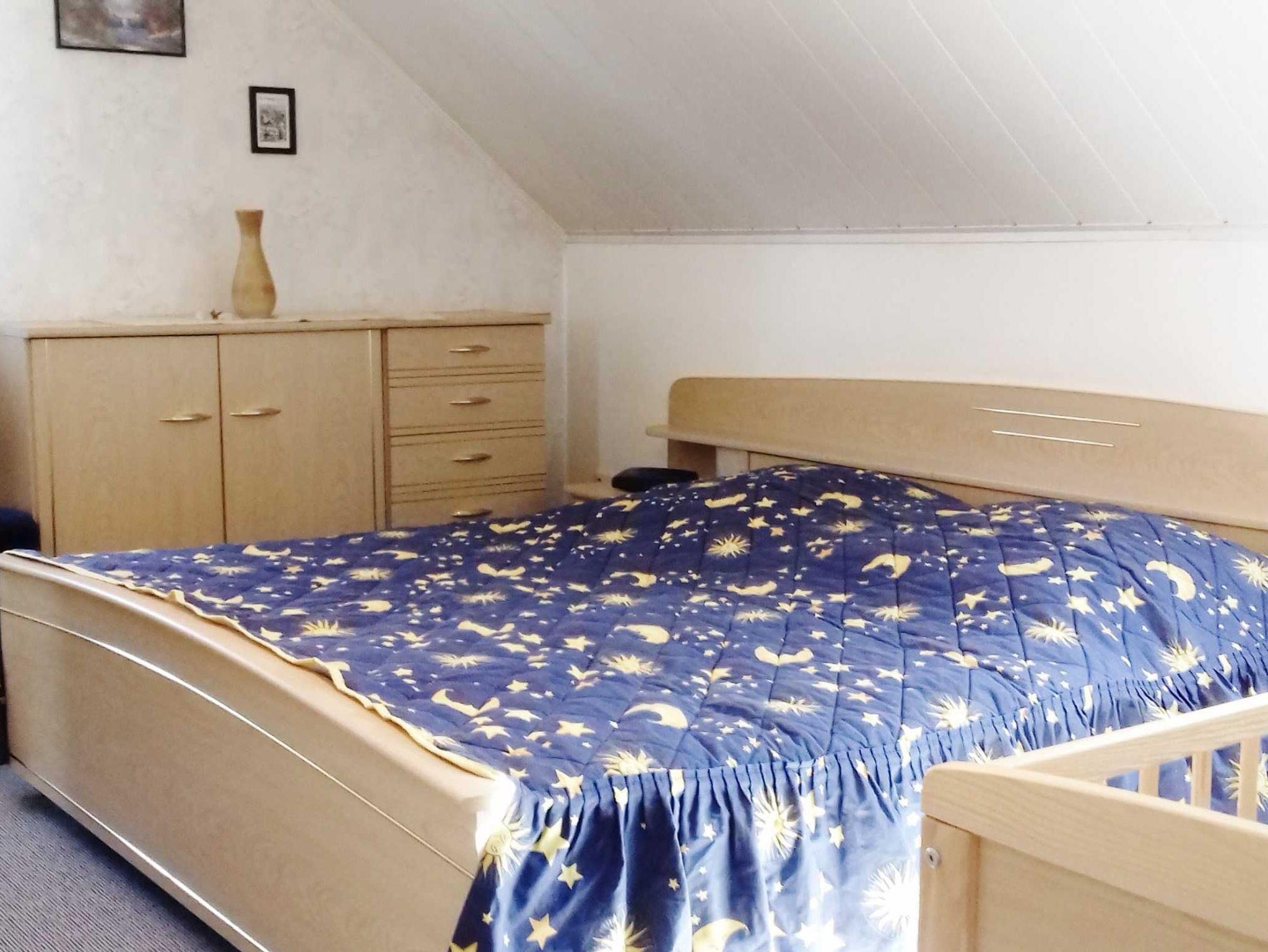 Die 64 qm große Ferienwohnung befindet sich in der oberen Etage und ist für bis zu 4 Personen geeignet. Die 2 Zimmerwohnung ist gemütlich und komfortabel eingerichtet. Im Wohnzimmer ist eine große Eckcouch mit einer Essecke, es gibt digitales TV, DVD-Player und ein Radio mit CD. Ausgestattet ist das Schlafzimmer mit einem Doppelbett, einem Kinderbett und einem großen Kleiderschrank. In der vollausgestatteten Küche finden Sie ein 4 flammiges Ceranfeld, Backofen, Kühlschrank, Geschirrspüler, Kaffeemaschine, Mikrowelle, Toaster und eine Brotschneidemaschine. Das Badezimmer ist mit einer Eckbadewanne ausgestattet.