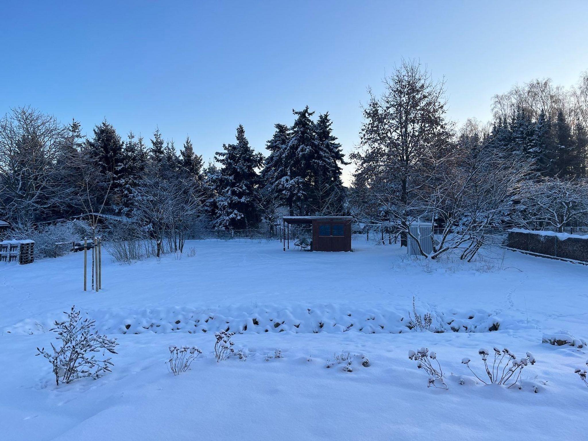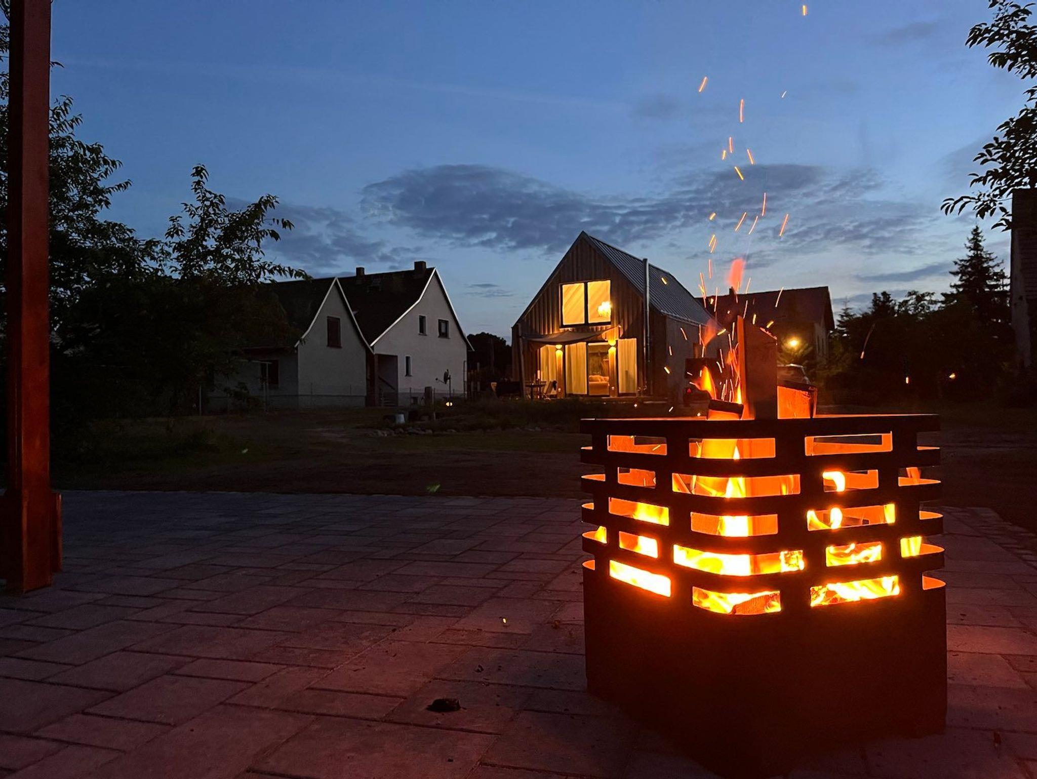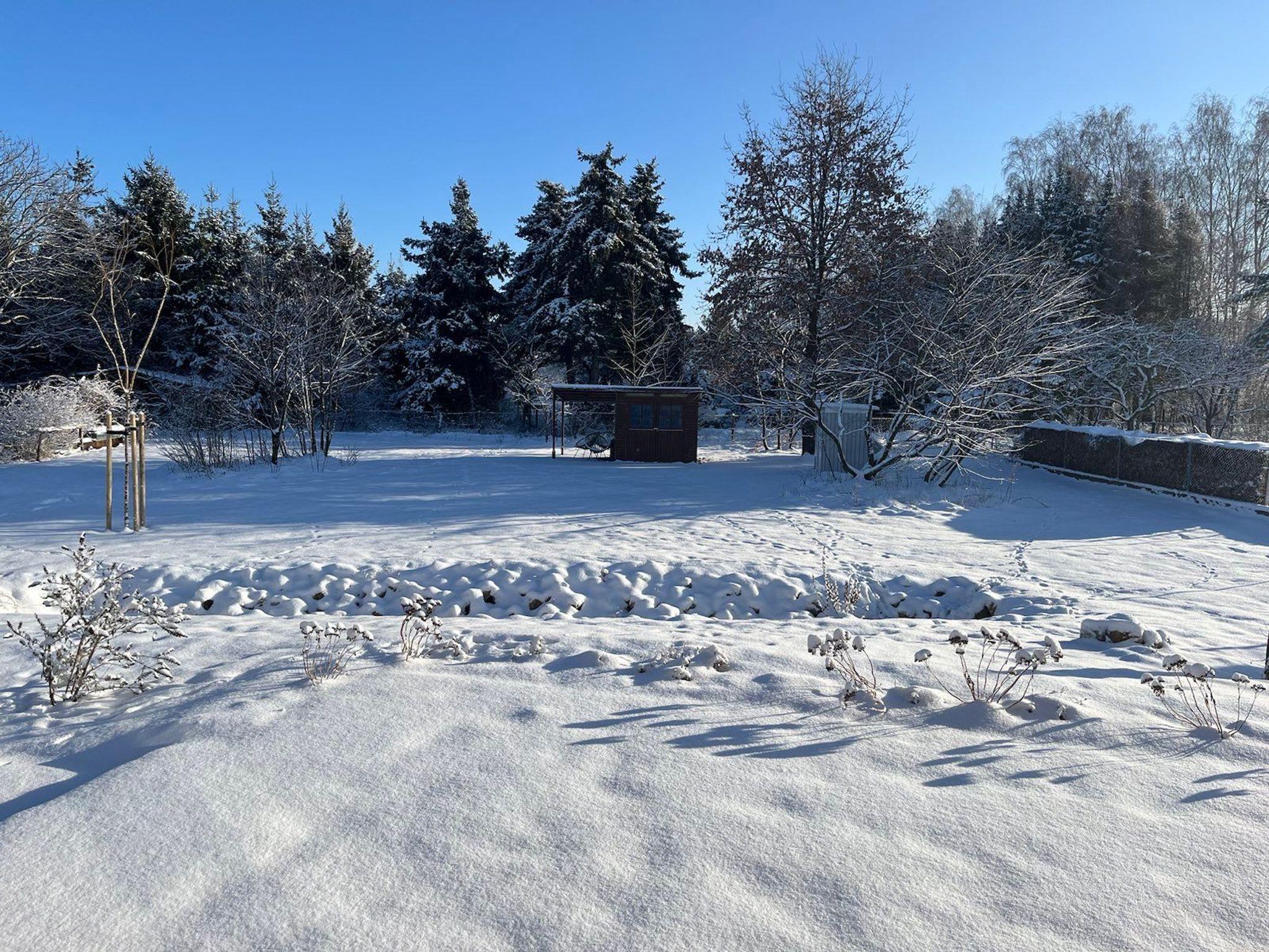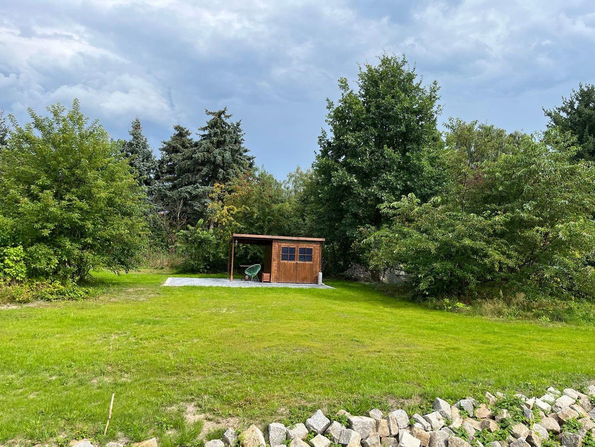 An der Gartenhausterrasse können Sie grillen und selbst ein kleines Lagerfeuer ist möglich (Holz ist vor Ort zu kaufen). Überhaupt sollte schon allein das große Grundstück mit mehr als 1.000 qm Wiese und Bäumen und Sträuchern Freude und Erholung bringen.
