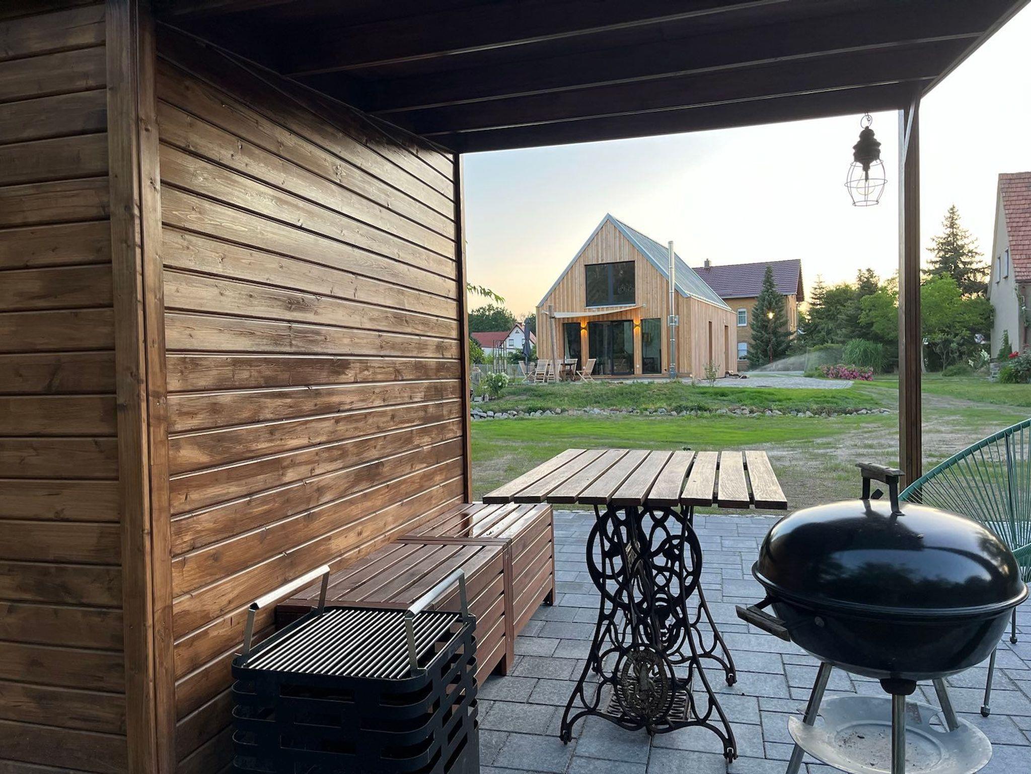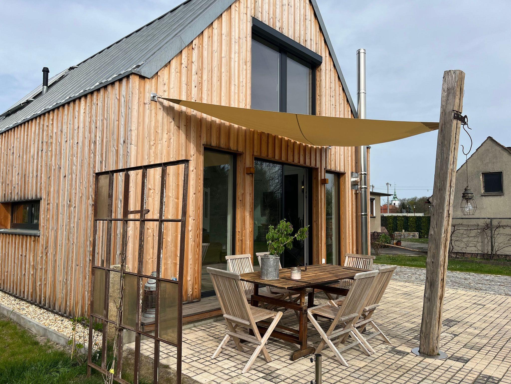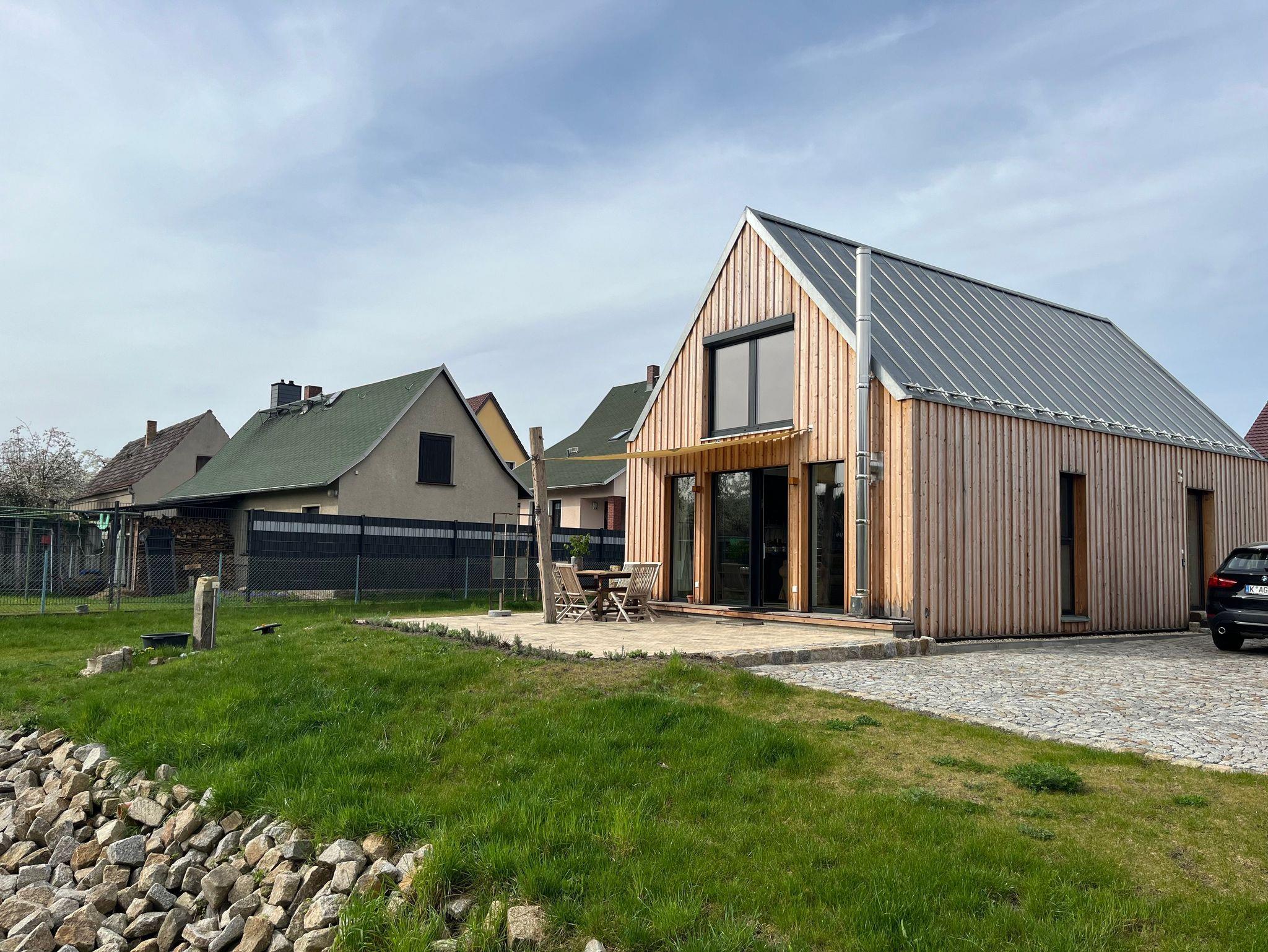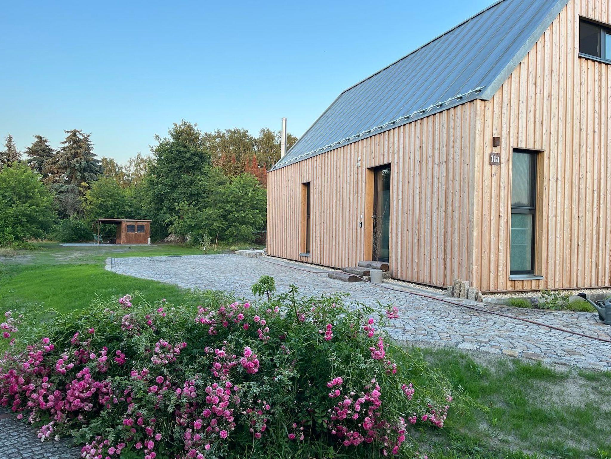 Gäste können sich auf ein kleines und gemütliches Architektenhaus in Holzrahmenbauweise freuen. Überwiegend wurden natürliche und nachwachsende Bau- und Dämmstoffe verarbeitet, sodass tatsächlich ein hypoallergener und wohngesunder „Raumduft“ entstanden ist.