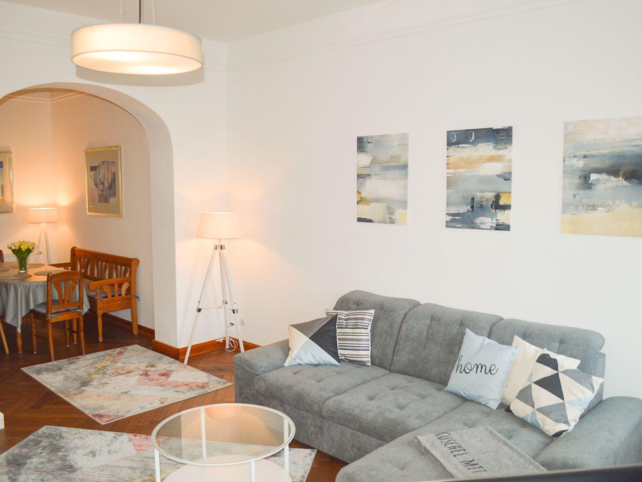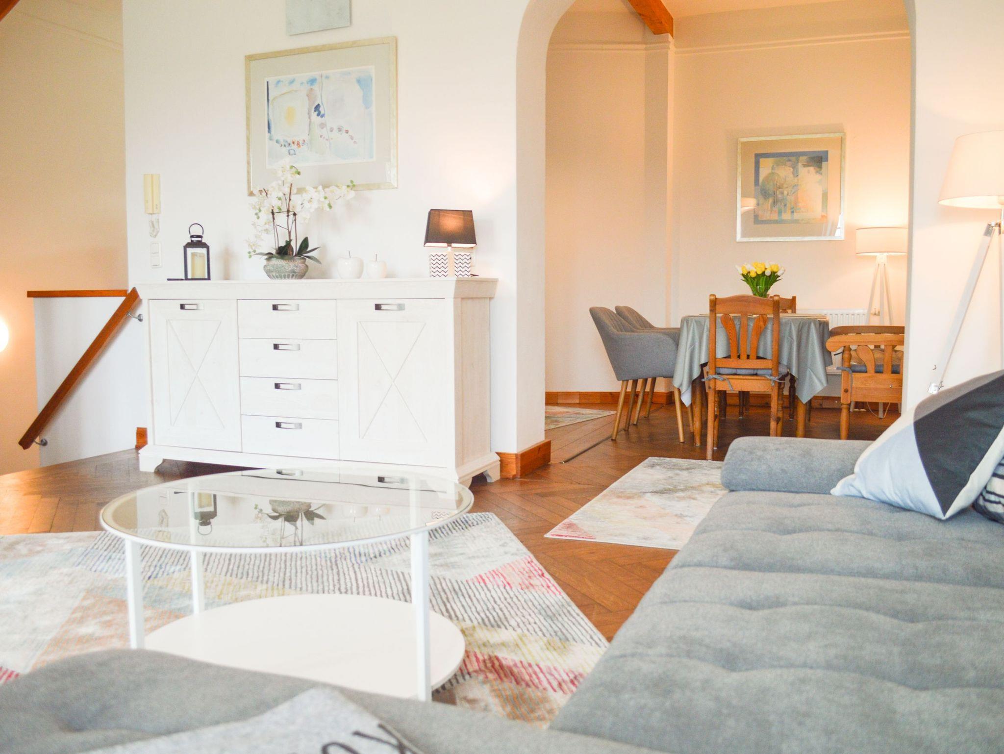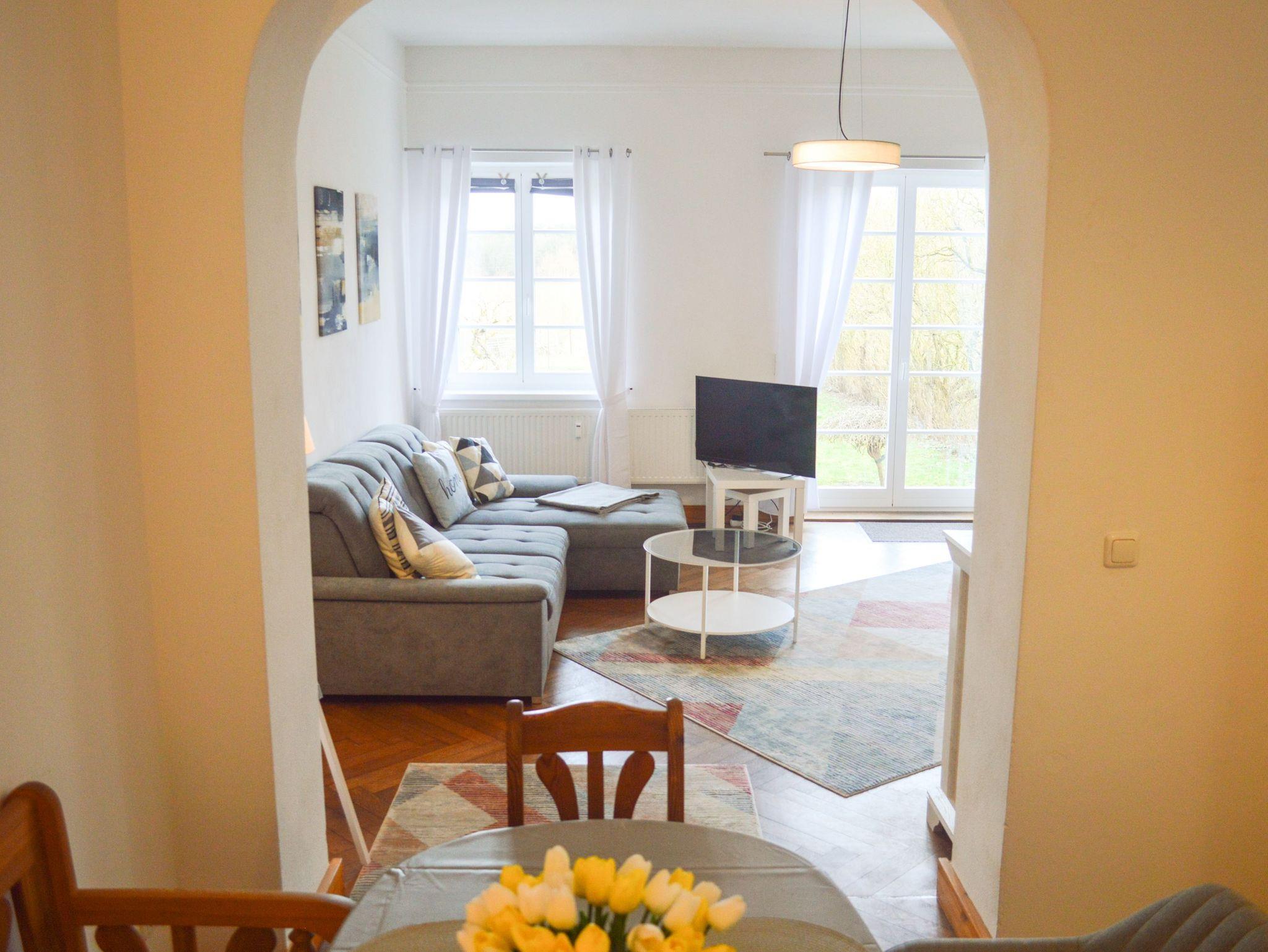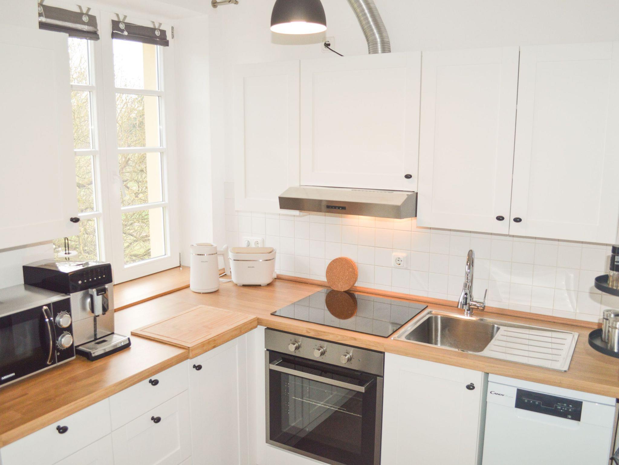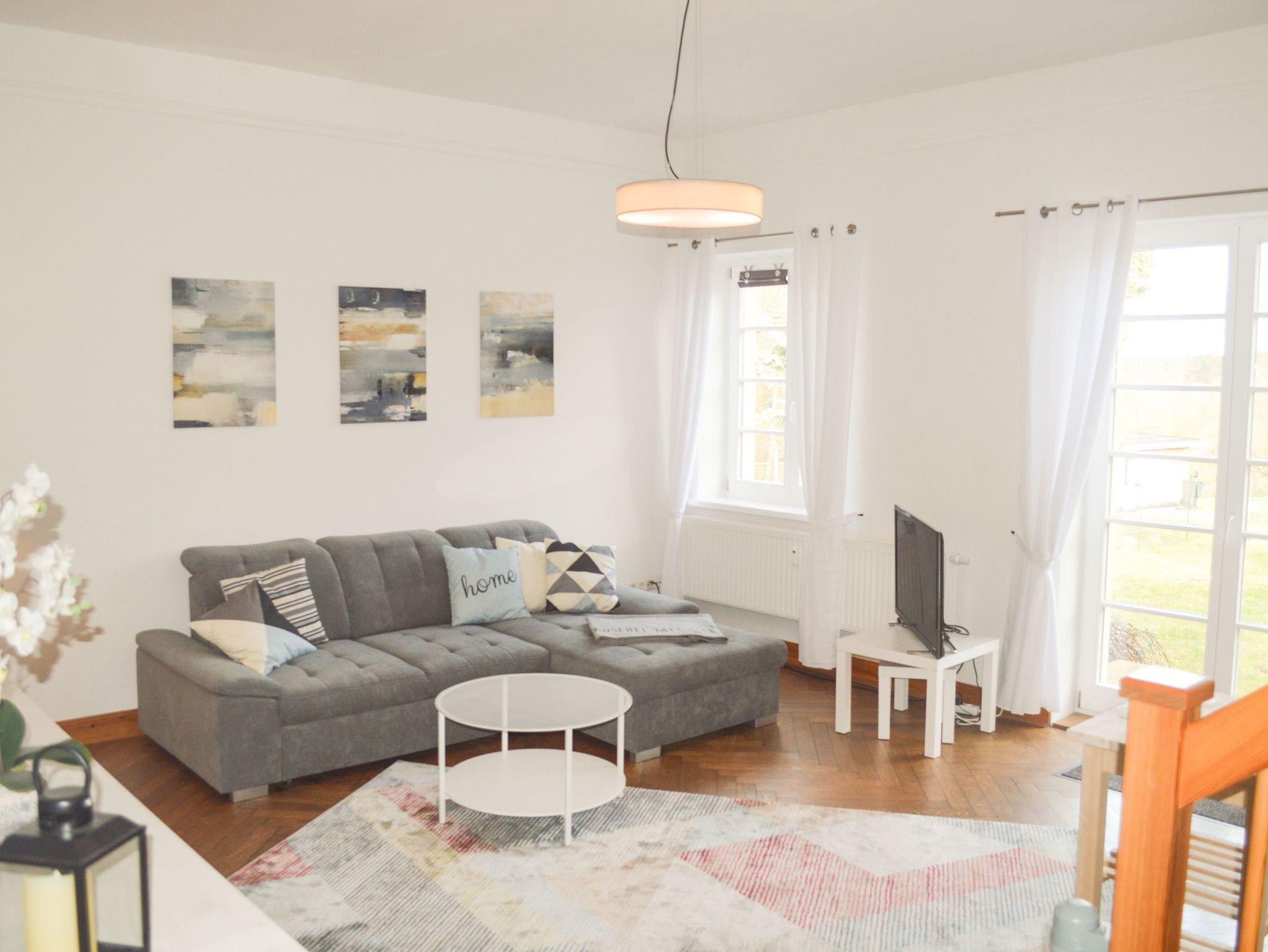 Die Ferienwohnung im Gutshaus Neu Necheln ist ein charmanter Erholungsort für bis zu 8 Personen. Auf 140 m² Wohnfläche könnt ihr gemeinsam einen entspannten Kurztrip oder einen ausgedehnten Urlaub an der mecklenburgische Seenplatte verbringen. Im Erdgeschoss erwartet euch der offene Essbereich mit anschließender Küche und Wohnzimmer. Von hier aus gelangt ihr direkt in den großzügigen eingezäunten Garten. Das Wohnzimmer verfügt über ein Schlafsofa (140x200) und einen TV. Die voll ausgestattete Küche empfängt euch mit allem, was ihr für einen entspannten Morgen oder gemütlichen Abend benötigt. Für euere köstlichen Mahlzeiten stehen euch ein Kühlschrank, Backofen, Induktionsherd und Küchenhelfer des täglichen Bedarfs zur Verfügung. Startet mit einem Kaffee aus dem Kaffeevollautomaten oder einem Tee in den Tag. Im Obergeschoss befinden sich 2 Schlafzimmer mit jeweils einem Doppelbett (180x200, 160x200) und einem Kleiderschrank, die für erholsame Nächte sorgen. Das Hauptschlafzimmer ist über einen Rundbogen mit Vorhang vom Flur aus erreichbar. Das 2. Schlafzimmer geht separat mit einer Tür vom Flur ab. Das Bad ist mit einer Badewanne, Dusche, Toplader und WC ausgestattet. Im Untergeschoss könnt ihr das 3. Schlafzimmer mit Doppelbett (140x200) nutzen, wenn ihr etwas mehr Platz braucht.