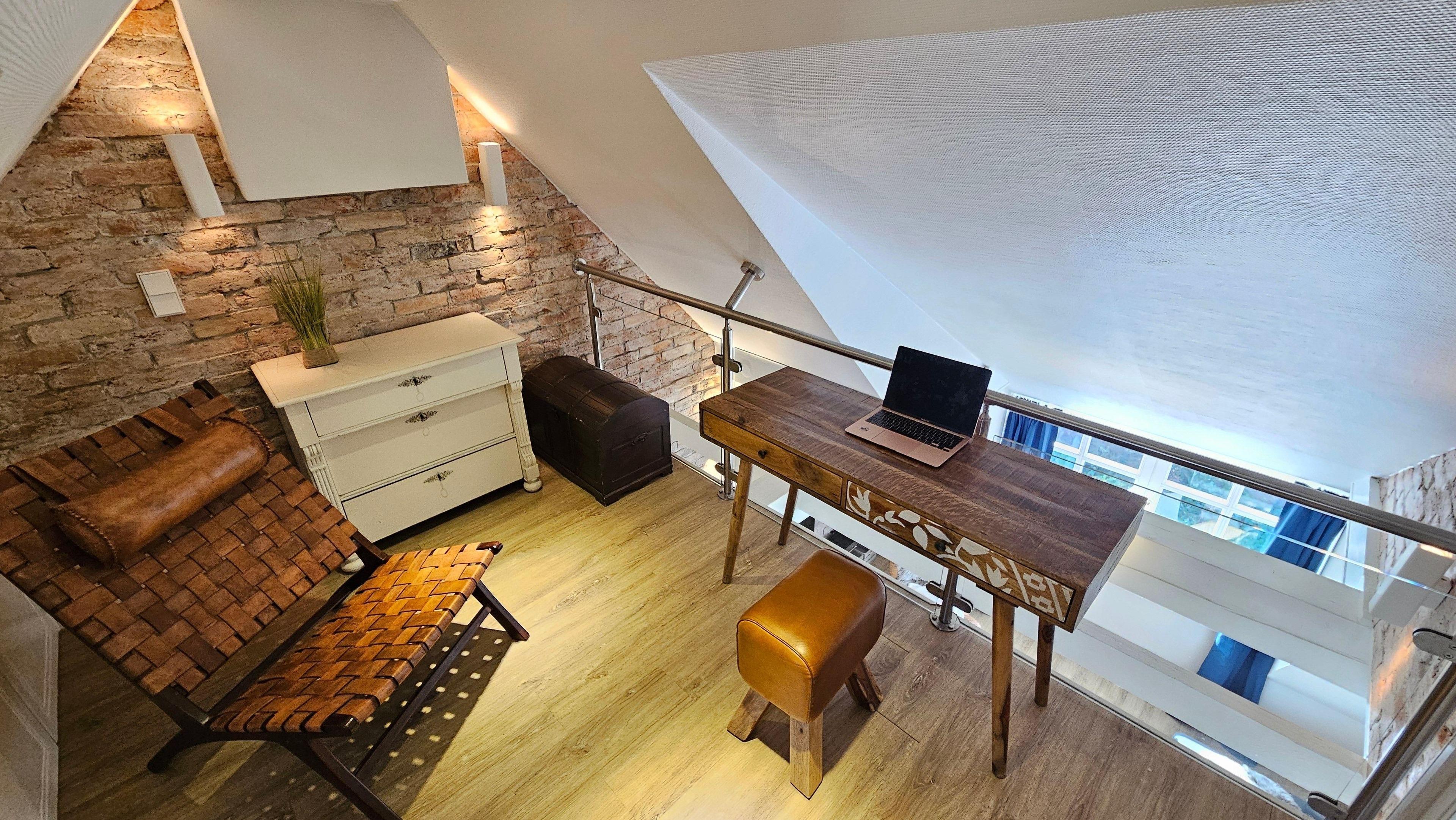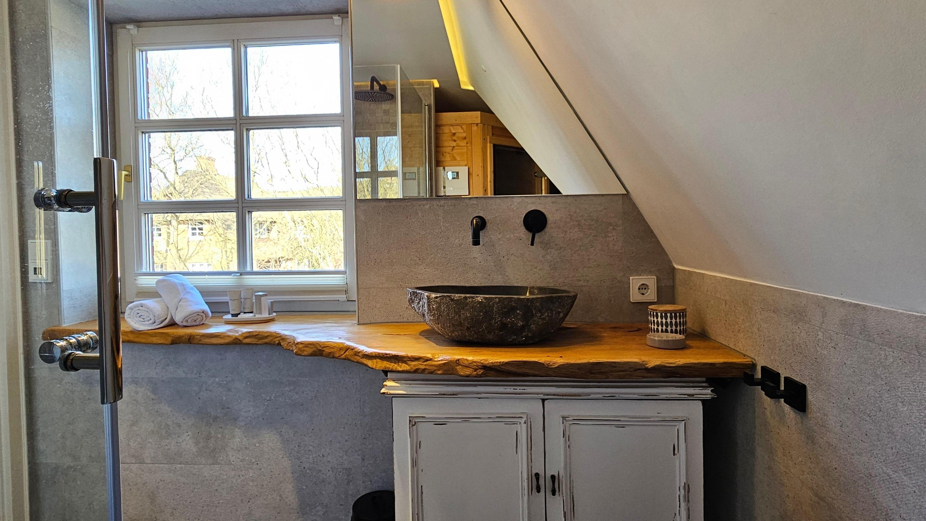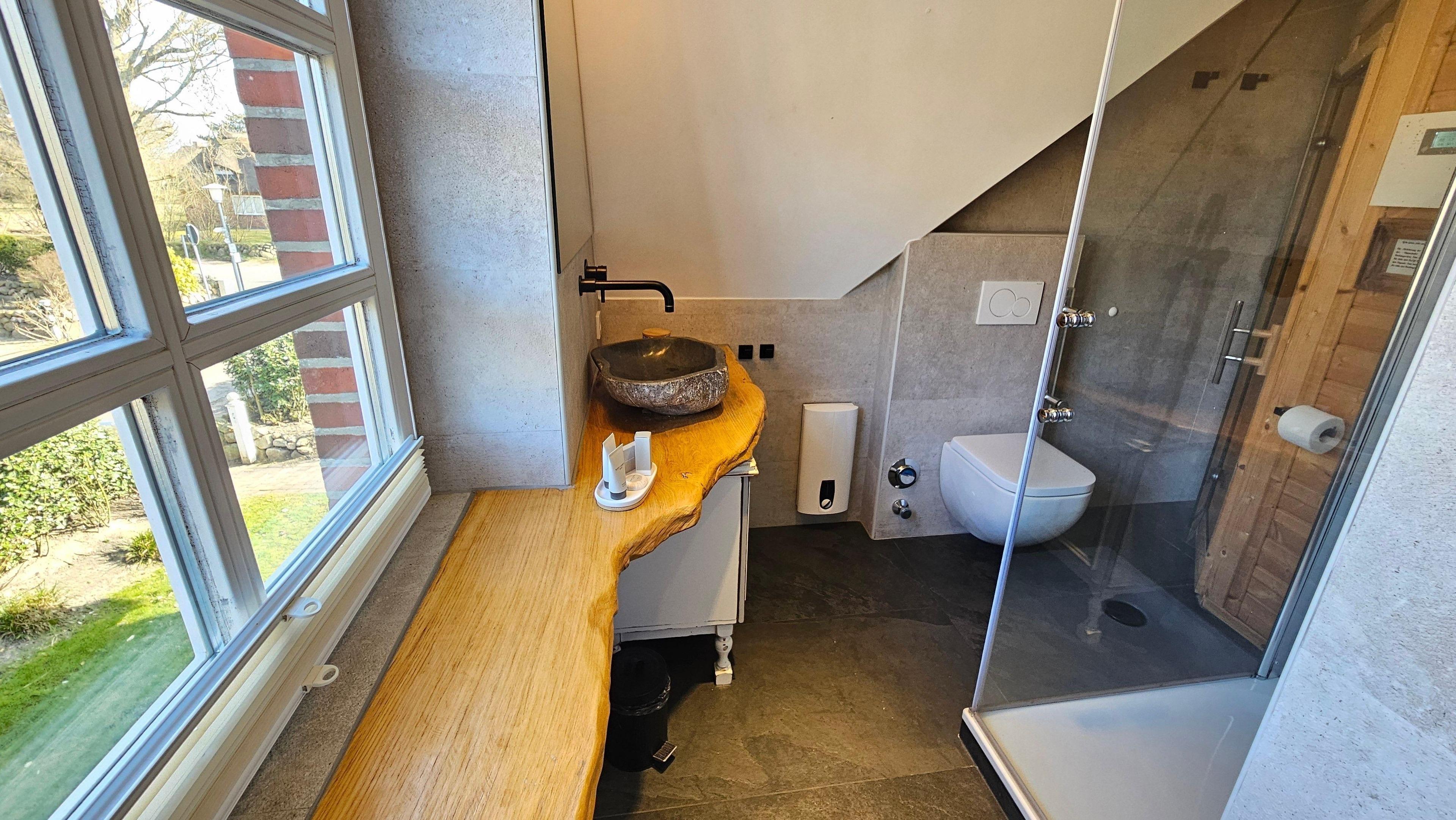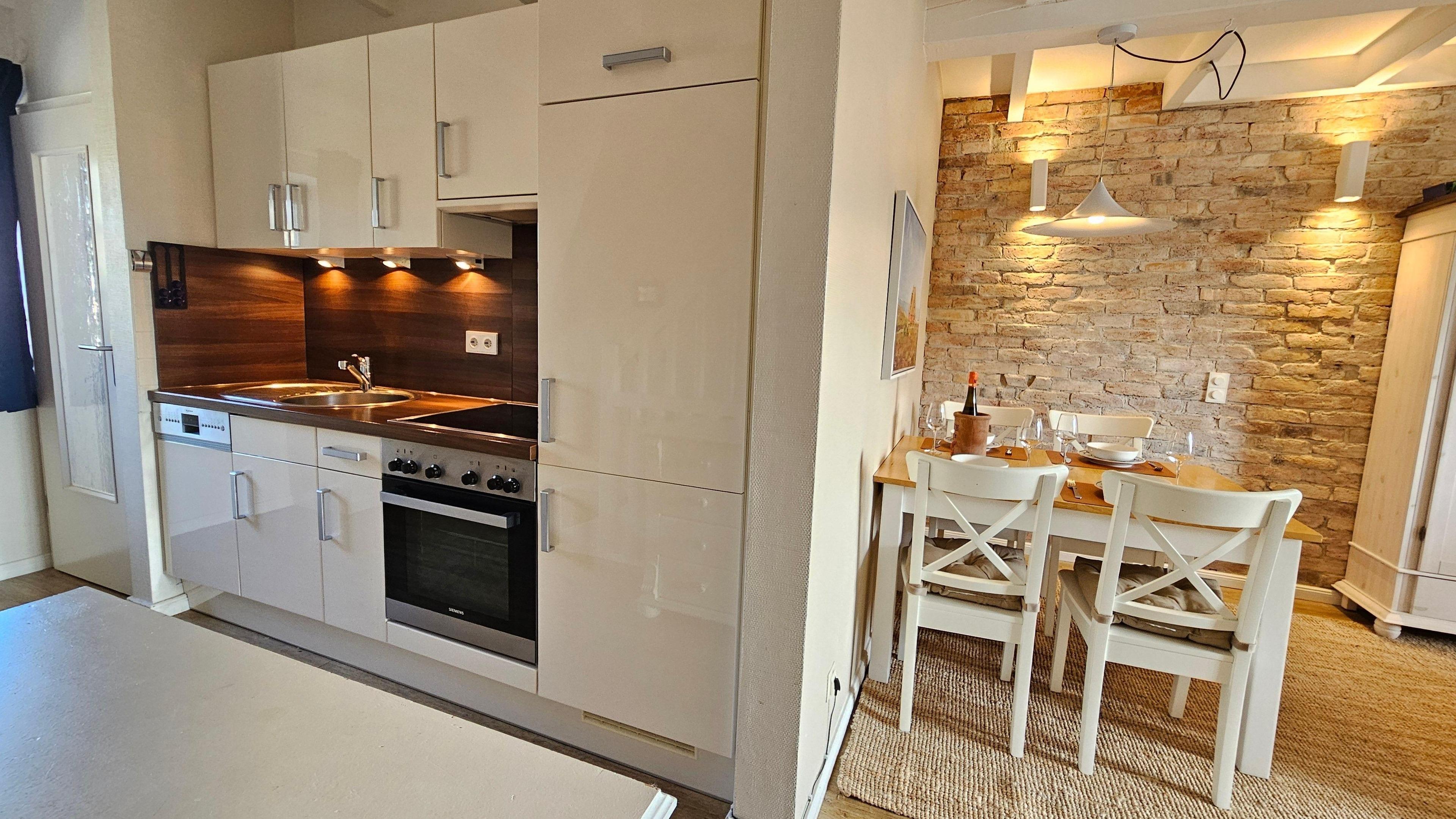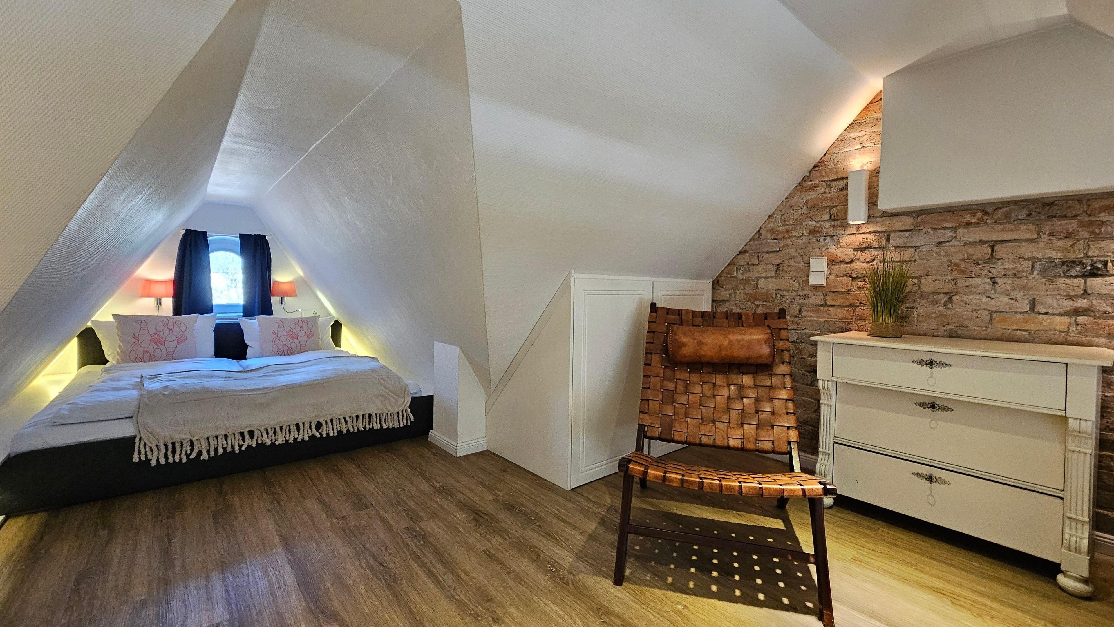 Sie betreten die Wohnung im oberen Teil eines schönen, klassischen Sylter Reethauses über den Eingangsbereich mit Sisaltreppe, die Sie in den Wohnbereich führt. Sofort werden Sie die wohlige Atmosphäre bemerken, die sich besonders durch ein durchdachtes Lichtkonzept, eine offene Galerie und hochwertige Materialien auszeichnet. Der Wohnbereich ist mit einem gemütlichen Schlafsofa , einem Esstisch und elektronischen Entertainment-Geräten ausgestattet. Gleich nebenan befindet sich die gut ausgestattete Küche mit allen wichtigen Geräten inklusive Austernöffner. Das Badezimmer mit seiner großzügigen Dusche, Waschtisch mit massiven Eichenholz und die Sauna, ist ein besonderes Highlight. Über eine weitere Treppe gelangt man in die obere Etage, in der sich die sehr gemütliche Schlafkoje mit Doppelbett befindet. Auch findet man hier einen Bereich mit Schreibtisch und Sessel, der zum Arbeiten im Homeoffice und zum gemütlichen Lesen einlädt. Wärmen Sie sich in der gemütlichen Sauna nach einem Tag an der frischen Nordseeluft auf oder genießen Sie bei gutem Wetter einen unserer drei Strandkörbe auf dem Grundstück.