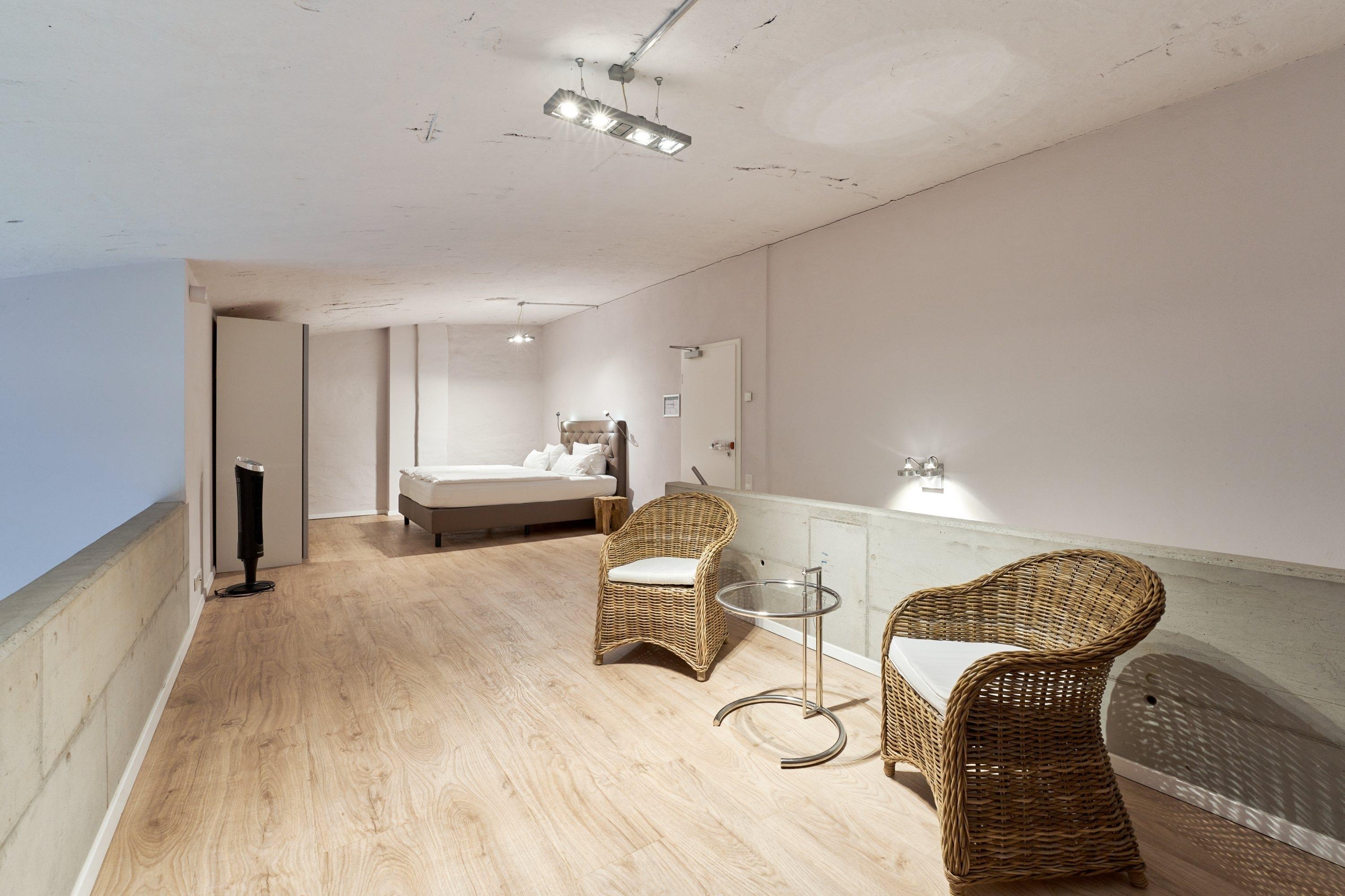 Die Maisonette-Ferienwohnung liegt im Obergeschoss der ehemaligen Färberei der Kammgarnspinnerei und zeichnet sich durch ihre geräumige und großzügige Raumaufteilung (108m²) aus. Die gut geschnittene, viel Platz bietende und komfortabel ausgestattete Loft-Ferienwohnung ist durch Aufbettung nicht nur für 6 sondern auch für 8 Personen geeignet. Die Bereitstellung von Kinderreisebetten und Hochstühlen ist nach Vorbestellung jederzeit möglich.