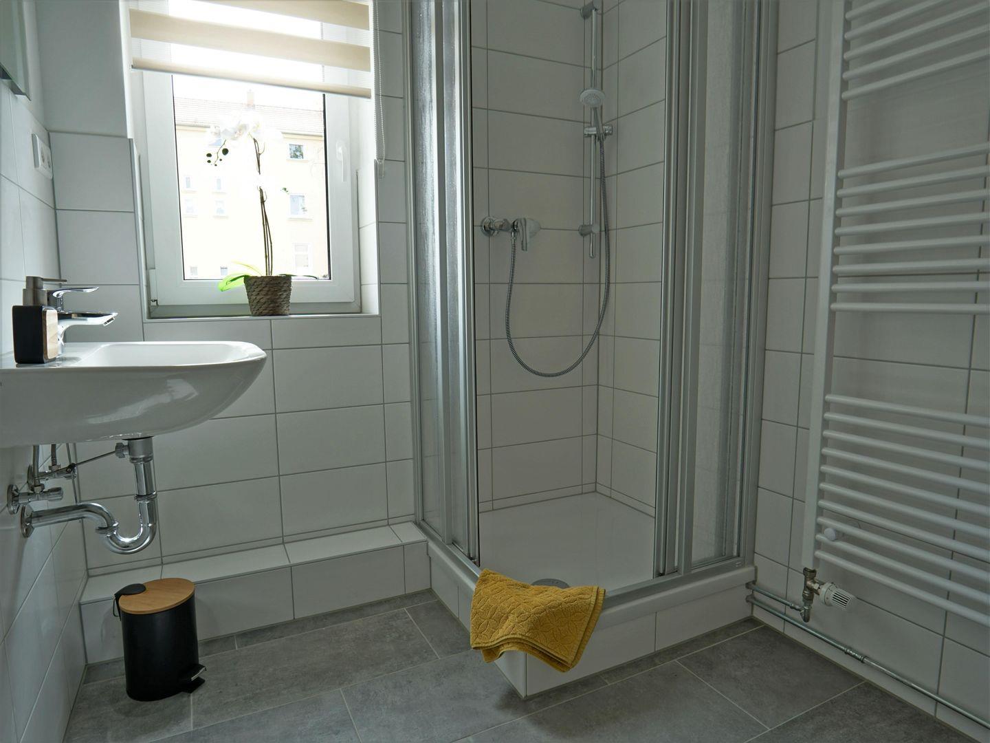 Ein modernes Badezimmer ergänzt die praktische Ausstattung. Es verfügt über eine Dusche, ein Waschbecken, ein WC sowie einen Haartrockner und einen Spiegel. Hochwertige Handtücher und Geschirrhandtücher werden Ihnen bereitgestellt, damit Sie sich gleich heimisch fühlen können.