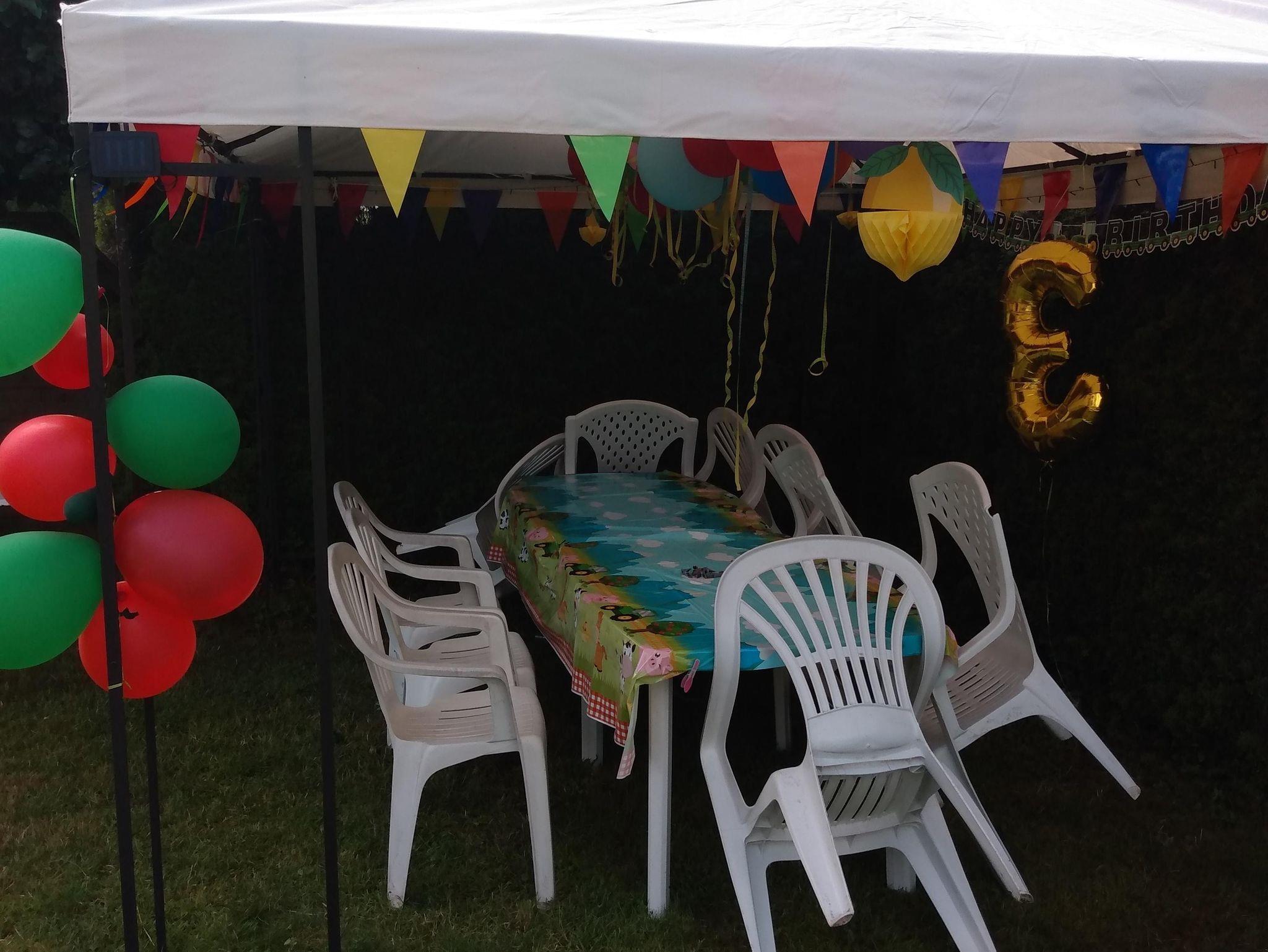 Außen: Gartenmöbel, Grillplatz, Spielgeräte.