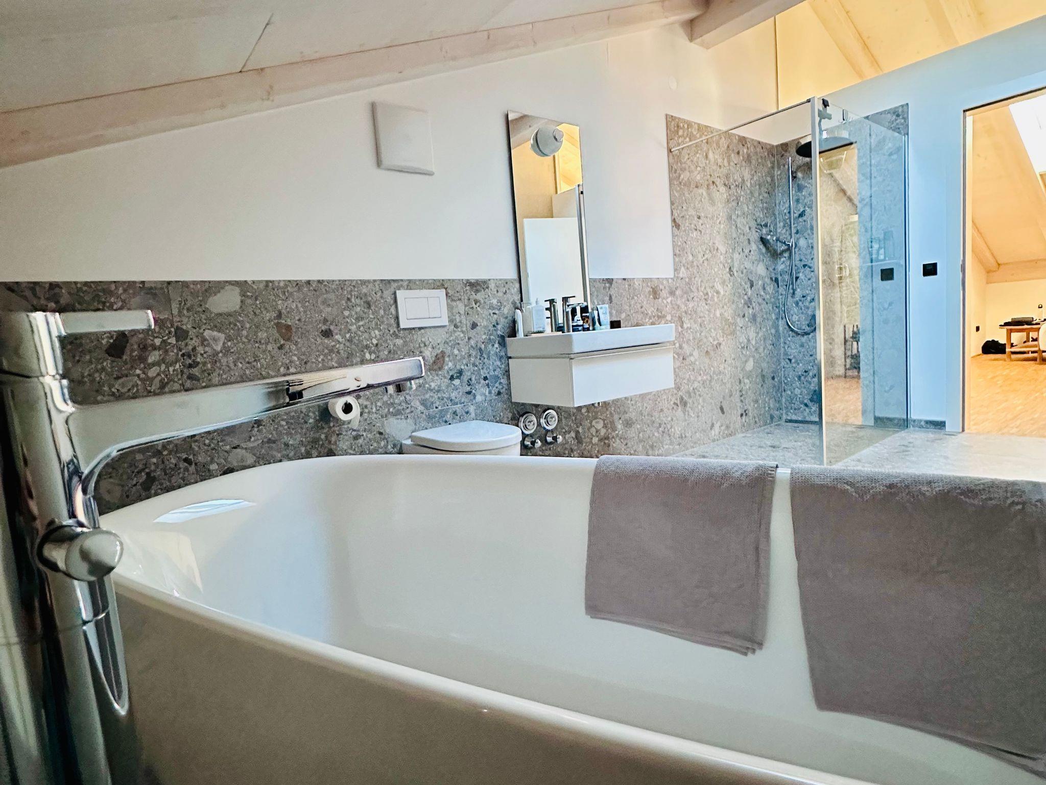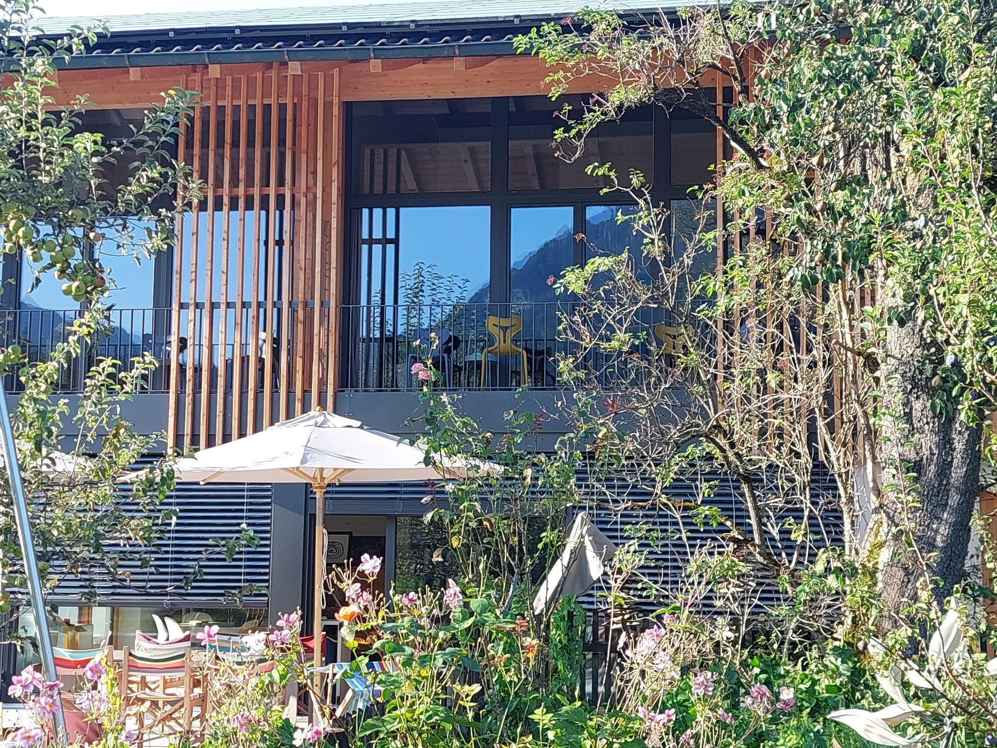 Die mit viel Liebe zum Design ausgestattete Galeriewohnung ist für 2-6 Personen geeignet und bietet mit ihrer hochwertigen Küchenausstattung (u.a. Induktionskochfeld, Geschirrspüler und Bora-Abzug), sowie der Ausstattung der beiden Bäder (freistehende Badewanne, Spülautomatik-Sensor und Regendusche) höchsten Komfort und Exklusivität. Über die Galerie gelangen Sie in zwei abgeschlossene Schlafräume (180 cm Bett bzw. 160 cm Bett), sowie einen offenen Bereich, der als weitere Schlafmöglichkeit (160 cm Schlafcouch) oder zum Chillen, Lesen oder Spielen einlädt. Vom großzügigen Südbalkon aus können Sie den Blick über die umliegenden Berge schweifen lassen. Unser Obstgarten lädt ebenfalls zum Verweilen ein.